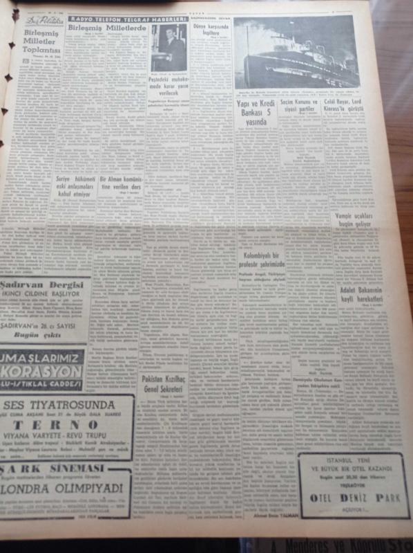 Vatan Gazetesi - 23 Eylül 1949 - Ahmet Emin Yalman - Birleşmiş Milletler'de Çin Delegesinin Rusya'yı İthamı - İngiltere Maliye Bakanı Sir Stafford Cripps - Sterlin'in Düşürülmesinin Memleketimizdeki Tesirleri - Truman Stalin Mülakatı - Seçim Kanunu Ve Siyasi Partiler - Cumhurbaşkanı İsmet İnönü'nün Gezintileri - Berlin Oteli Tefrika - Taksim Sineması - Yapı Ve Kredi Bankası 5 Yaşında - Suriye Hükümeti Eski Anlaşmaları Kabul Etmiyor - Nuh'un Gemisi Peşinde Yazı Dizisi - Cemiyet Hayatı - Tansiyon Aleti Yapan Saatçi Mehmet Pekuygun - Galatasaray İstanbulspor İle Hususî Karşılaşması - Beşiktaş İzmir'e Gitti - Arı Pirinç Unu Maması - Parker Dolma Kalem - Bulmaca - Radyo - Doktor Raif Ferit Bir adlı eser Türkçe dilindedir.