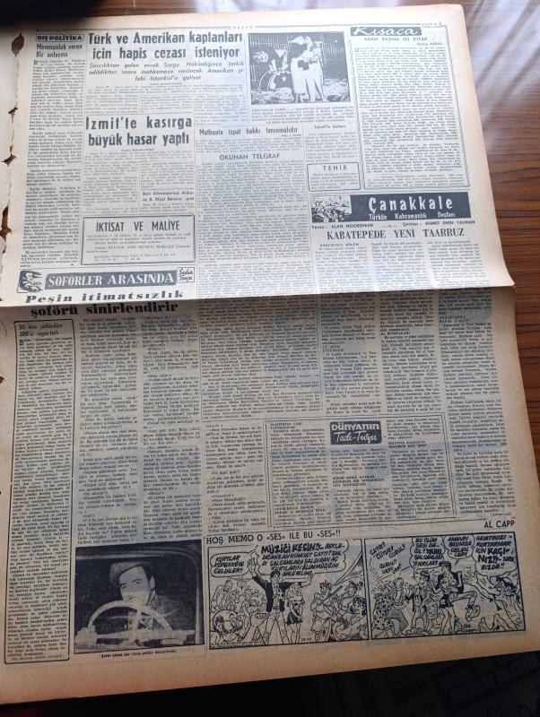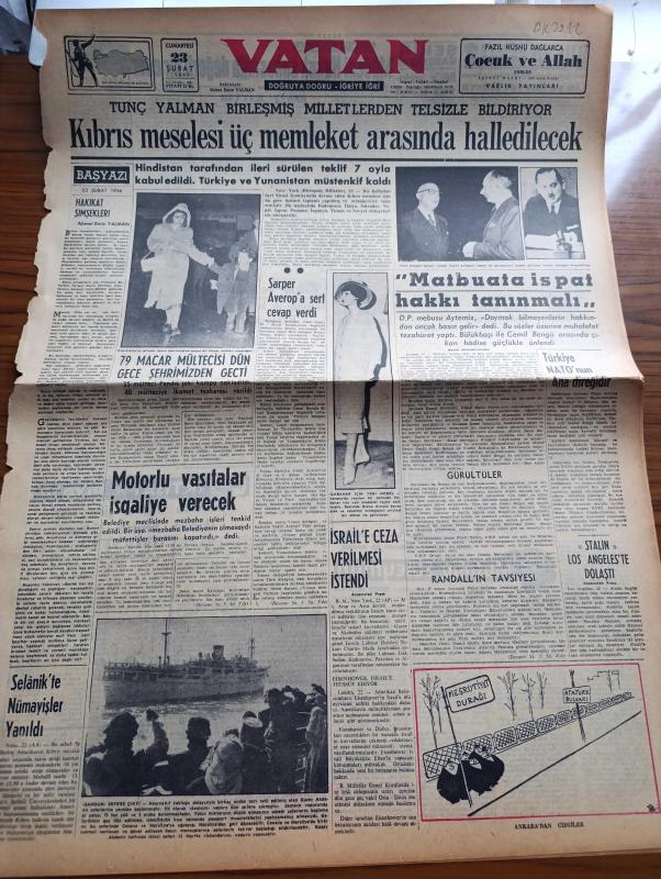 Vatan Gazetesi - 23 Şubat 1957 - Hakikati Şimşekleri Yazan Ahmet Emin Yalman Köşe Yazısı - Selanik'te Nümayişler Yapıldı - Tunç Yalman Birleşmiş Milletlerden Telsizle Bildiriyor Kıbrıs Meselesi Üç Memleket Arasında Halledilecek - 79 Macar Mültecisi Gece Şehrimizden Geçti - Stalin Los Angeles'te Dolaştı - Samsun Vapuru Sefere Çıktı - Ahmet Mithat Efendi'nin Bir Romanı Musullu Süleyman Sadeleştiren Behçet Necatigil Yazı Dizisi - İnönü İlkokulunun Adı Ziya Gökalp Oldu - Vietnam Başvekili Dien Diem'e Suikast - İzmir Vapuru Ve Amerikan Şilebinin Çarpışmasında Türk Ve Amerikan Kaptanları İçin Hapis Cezası İsteniyor - Çanakkale Türk'ün Kahramanlık Destanı Yazan Alan Moorehead Yazı Dizisi - Hoş Memo Karikatür Çizen Al Capp - Denize Dalan İngiliz Dansözü Pamela Dawis Fotoğraf - 1001 Gece Masalları Hazırlayan Suat Taşer Yazı Dizisi - Reşat Nuri Güntekin İçin Yazan Ruşen Eşref Ünaydın Yazı Dizisi - Burç Falı - Fay Temizleme Tozu - Bulmaca - Vidi Vidi Çizen Walter Lantz - Macar Uypeşt Takımı adlı eser, Kitap > Süreli Yayınlar > Gazeteler > Türkiye > Genel > Günlük kategorisinde İkinci El olarak satıştadır.