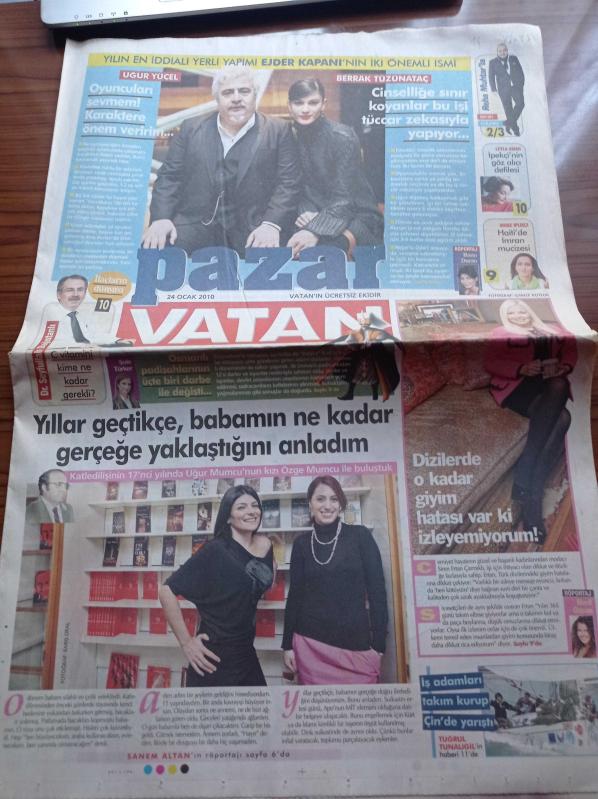 Vatan Gazetesi - 24 Ocak 2010 - Yılın İddialı Yerli Yapımı Ejder Kapanı'nın İki Önemli İsmi Uğur Yücel Ve Deniz Akkaya Fotoğrafı - Uğur Mumcu'nun Kızı Özge Mumcu Yıllar Geçtikçe Babamın Ne Kadar Gerçeğe Yaklaştığını Anladım - Siren Ertan Çarmıklı Dizilerde O Kadar Giyim Hatası Var Ki İzleyemiyorum - Reha Muhtar adlı eser Türkçe dilindedir.