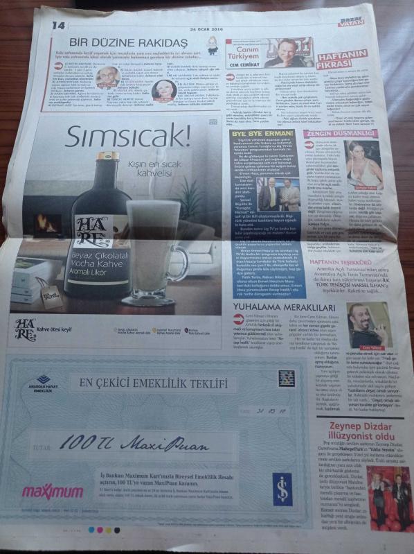 Sayfa Boyutu: 38*56cm Sayfa Sayısı: 14 Vatan Pazar Gazetesi Yıpranma, sararmalar, kupon kesiği ve yırtılmalar zamana bağlı olarak görülebilir