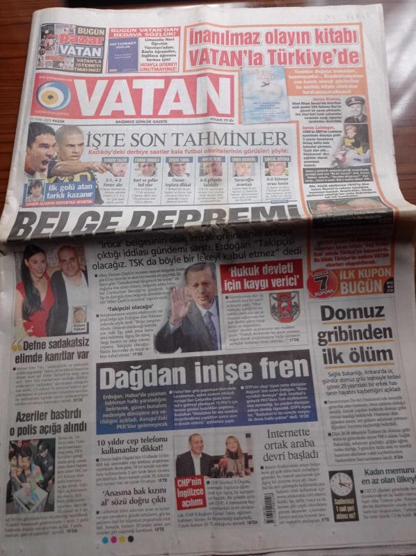 Vatan Gazetesi - 25 Ekim 2009 - Domuz Gribinde İlk Ölüm Ankara'da - Eren Talu Defne Samyeli Sadakatsiz Elimde Kanıtlar Var - Recep Tayyip Erdoğan Habur'da Yaşanan Tablodan Sonra Dağdan İnişe Fren Yaptı - Kadıköy'deki Fenerbahçe Galatasaray Maçı Öncesi Son Tahminler - İrtica Belgesinin Islak İmzalı Orijinalinin Ortaya Çıktığı İddiası Gündemi Sarstı adlı eser Türkçe dilindedir.