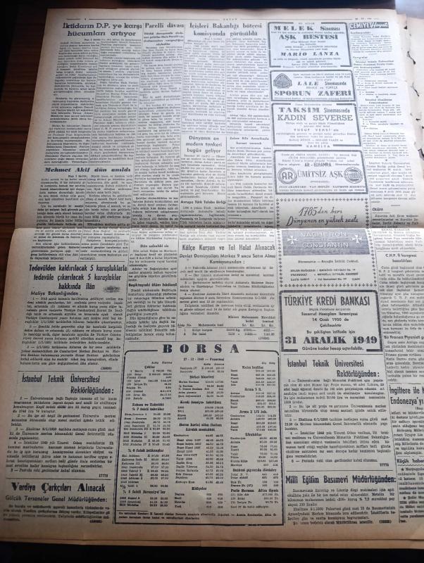 Vatan Gazetesi - 28 Aralık 1949 - Karşımıza Çıkan Hızırlar ve Devler Yazan Ahmet Emin Yalman Köşe Yazısı - İçişleri Bakanlığında Değişmeyen Zihniyet - İktidarın Demokrat Parti'ye Karşı Karşı Hücumları Artıyor - Suriye'de Buhran Dün Gece Halledildi - Haşim Attaşi İstifasını Geri Aldı - Einstein'in Yeni Bir Teorisi - Mehmet Akif Ersoy Dün Anıldı - Türkiye İle Amerikan Kültür Anlaşması Dün İmzalandı - İngiltere Ve Kanada Endonezya'yı Tanıdı - Piyasada Buhran İki Büyük Firma Daha İflas Halinde - Memleket Ölçüsünde Yeni Seyrüsefer Nizamı - Esrarlı Kadın Yazan Alfred Machard Yazı Dizisi - Geçmişte Bugün Yazan Feridun Fazıl Tülbentçi Yazı Dizisi - Avrupa Birliğinde İngiltere Ve Fransa'nın Rolleri Yazan Anthony Eden - Stalin İdareyi Üç Kişiye Bırakacak Molotov Bulganin Ve Malenkov - Casuslar Ankara'da Yazan L.C. Mayzisch Yazı Dizisi - Dünyanın En Modern Tankeri Sovac Astral Bugün Geliyor - Lale Sineması - Melek Sineması - Moskova'dan Geliyorum Yazan Memduh Tezel Yazı Dizisi - Paris'te Tiyatro, Ahmet Emin Yalman tarafından kaleme alınmıştır. Vatan Gazetesi - 28 Aralık 1949 - Karşımıza Çıkan Hızırlar ve Devler Yazan Ahmet Emin Yalman Köşe Yazısı - İçişleri Bakanlığında Değişmeyen Zihniyet - İktidarın Demokrat Parti'ye Karşı Karşı Hücumları Artıyor - Suriye'de Buhran Dün Gece Halledildi - Haşim Attaşi İstifasını Geri Aldı - Einstein'in Yeni Bir Teorisi - Mehmet Akif Ersoy Dün Anıldı - Türkiye İle Amerikan Kültür Anlaşması Dün İmzalandı - İngiltere Ve Kanada Endonezya'yı Tanıdı - Piyasada Buhran İki Büyük Firma Daha İflas Halinde - Memleket Ölçüsünde Yeni Seyrüsefer Nizamı - Esrarlı Kadın Yazan Alfred Machard Yazı Dizisi - Geçmişte Bugün Yazan Feridun Fazıl Tülbentçi Yazı Dizisi - Avrupa Birliğinde İngiltere Ve Fransa'nın Rolleri Yazan Anthony Eden - Stalin İdareyi Üç Kişiye Bırakacak Molotov Bulganin Ve Malenkov - Casuslar Ankara'da Yazan L.C. Mayzisch Yazı Dizisi - Dünyanın En Modern Tankeri Sovac Astral Bugün Geliyor - Lale Sineması - Melek Sineması - Moskova'dan Geliyorum Yazan Memduh Tezel Yazı Dizisi - Paris'te Tiyatro adlı eser Türkçe dilindedir.