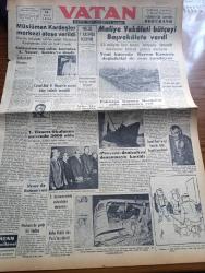Vatan Gazetesi - 28 Ekim 1954 - Suikastçının Kurşunu Yazan Ahmet Emin Yalman Köşe Yazısı - Müslüman Kardeşler Merkezi Ateşe Verildi - Suikastten Sağ Kurtulan Cemal Abdülnasır Kahire'ye Döndü - Cemal Abdülnasır'ın Mısır İhtilalinin İçyüzü Eserini Kitap Halinde Neşrettik - Maliye Vekaleti Bütçeyi Başvekalete Verdi - İngiltere Kıbrıs İçin Beyaz Kitap Çıkardı - Bakırköy Akıl Hastanesi'nde Yolsuzluğun Duruşması - Nafia Vekili Kemal Zeytinoğlu Dün Paris'ten Döndü - Preveze Denizaltısı Donanmaya Katıldı - Otomobil Sevdası Yazan İsmail Ateş Yazı Dizisi - Yerli Ve Yabancı İlaçlar Meselesi Yazan Doktor Kemal Saraçoğlu - Otobüs Ve Tramvaylar Eylül Ayında 11 Milyon Kişi Taşıdı - Marilyn Monroe Dün Boşandı - Uçan Dairelere Dair Yeni Yorumlar - Adapazarı'nda Sait Faik Abasıyanık Günü Yazan Oktay Akbal - Vatan Radyo İlavesi - Haftanın Bestecisi Robert Schumann - Amerika'nın Sesi Kütüphanesi - Bugün Dolmabahçe Stadında Vefa İle Emniyet Karşılaşacak - Spor Konfederasyonu Kuruluyor - Karakucak Güreş adlı eser, Kitap > Süreli Yayınlar > Gazeteler > Türkiye > Genel > Günlük kategorisinde İkinci El olarak satıştadır.
