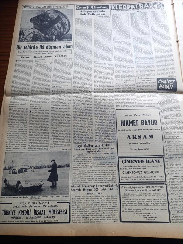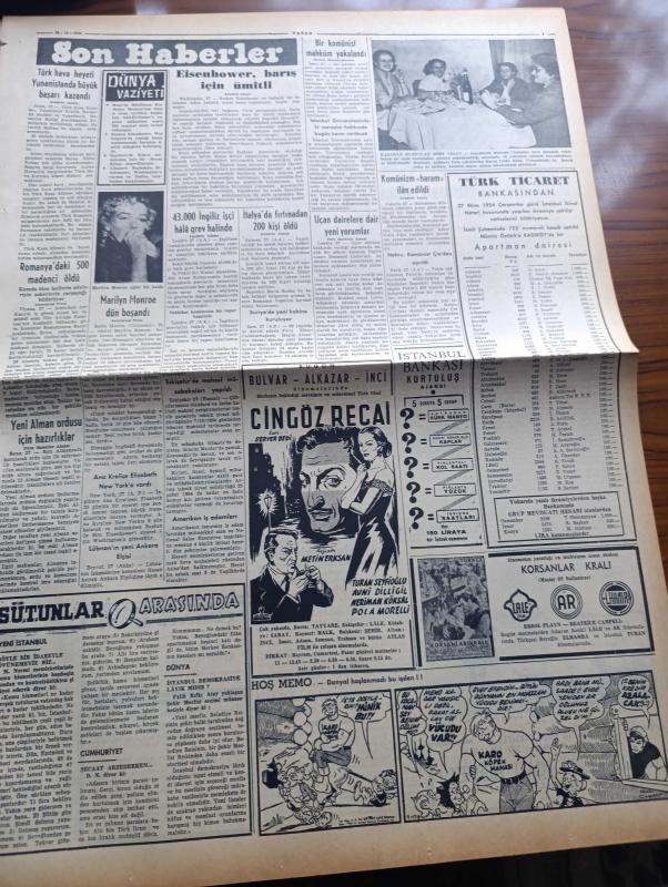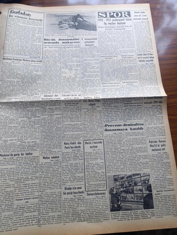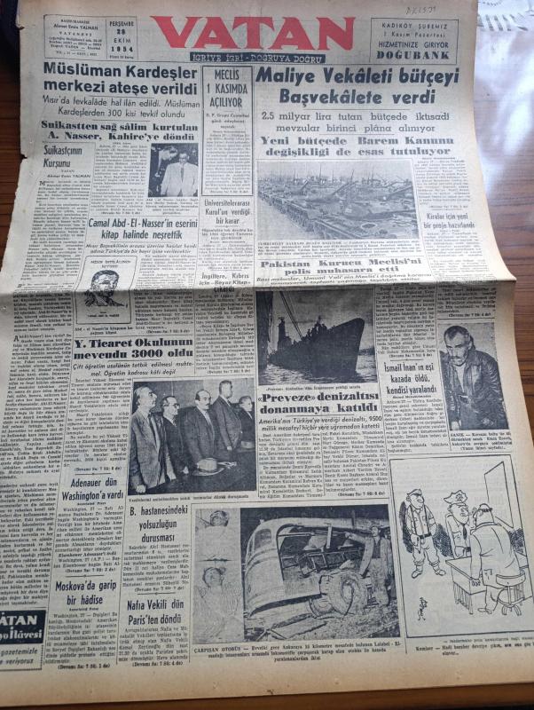 Vatan Gazetesi - 28 Ekim 1954 - Suikastçının Kurşunu Yazan Ahmet Emin Yalman Köşe Yazısı - Müslüman Kardeşler Merkezi Ateşe Verildi - Suikastten Sağ Kurtulan Cemal Abdülnasır Kahire'ye Döndü - Cemal Abdülnasır'ın Mısır İhtilalinin İçyüzü Eserini Kitap Halinde Neşrettik - Maliye Vekaleti Bütçeyi Başvekalete Verdi - İngiltere Kıbrıs İçin Beyaz Kitap Çıkardı - Bakırköy Akıl Hastanesi'nde Yolsuzluğun Duruşması - Nafia Vekili Kemal Zeytinoğlu Dün Paris'ten Döndü - Preveze Denizaltısı Donanmaya Katıldı - Otomobil Sevdası Yazan İsmail Ateş Yazı Dizisi - Yerli Ve Yabancı İlaçlar Meselesi Yazan Doktor Kemal Saraçoğlu - Otobüs Ve Tramvaylar Eylül Ayında 11 Milyon Kişi Taşıdı - Marilyn Monroe Dün Boşandı - Uçan Dairelere Dair Yeni Yorumlar - Adapazarı'nda Sait Faik Abasıyanık Günü Yazan Oktay Akbal - Vatan Radyo İlavesi - Haftanın Bestecisi Robert Schumann - Amerika'nın Sesi Kütüphanesi - Bugün Dolmabahçe Stadında Vefa İle Emniyet Karşılaşacak - Spor Konfederasyonu Kuruluyor - Karakucak Güreş, Ahmet Emin Yalman tarafından kaleme alınmıştır. Vatan Gazetesi - 28 Ekim 1954 - Suikastçının Kurşunu Yazan Ahmet Emin Yalman Köşe Yazısı - Müslüman Kardeşler Merkezi Ateşe Verildi - Suikastten Sağ Kurtulan Cemal Abdülnasır Kahire'ye Döndü - Cemal Abdülnasır'ın Mısır İhtilalinin İçyüzü Eserini Kitap Halinde Neşrettik - Maliye Vekaleti Bütçeyi Başvekalete Verdi - İngiltere Kıbrıs İçin Beyaz Kitap Çıkardı - Bakırköy Akıl Hastanesi'nde Yolsuzluğun Duruşması - Nafia Vekili Kemal Zeytinoğlu Dün Paris'ten Döndü - Preveze Denizaltısı Donanmaya Katıldı - Otomobil Sevdası Yazan İsmail Ateş Yazı Dizisi - Yerli Ve Yabancı İlaçlar Meselesi Yazan Doktor Kemal Saraçoğlu - Otobüs Ve Tramvaylar Eylül Ayında 11 Milyon Kişi Taşıdı - Marilyn Monroe Dün Boşandı - Uçan Dairelere Dair Yeni Yorumlar - Adapazarı'nda Sait Faik Abasıyanık Günü Yazan Oktay Akbal - Vatan Radyo İlavesi - Haftanın Bestecisi Robert Schumann - Amerika'nın Sesi Kütüphanesi - Bugün Dolmabahçe Stadında Vefa İle Emniyet Karşılaşacak - Spor Konfederasyonu Kuruluyor - Karakucak Güreş adlı eser Türkçe dilindedir.