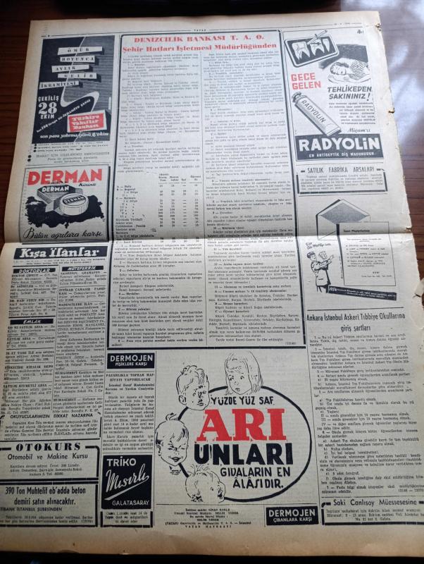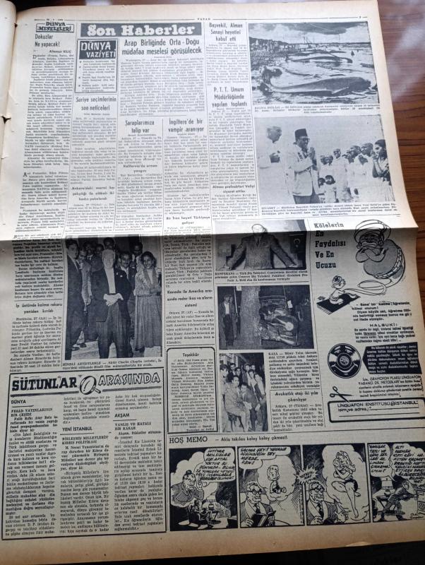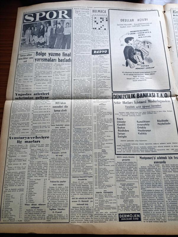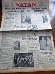 Vatan Gazetesi - 28 Eylül 1954 - Markos Ve Makarios Yazan Ahmet Emin Yalman Köşe Yazısı - Türkiye'de Kıbrıs'a Bir Mesaj Gönderildi - Celal Bayar El İşlerinin Önemini Belirtti - Dokuzlar Bugün Toplanıyor - Milli Tıp Kongresi İzmir'de Açıldı - Canlı Hayvan İhracına İzin Verildi - Titanik'ten Sonra En Büyük Deniz Faciası - Amerikalı İktisatçı Max Thornburg Dün İstanbul'a Geldi - Milli Tıp Kongresi İzmir'de Açıldı - Bu Toprak Uyanacaktır Yazan Muzaffer Buyrukçu Yazı Dizisi - Küçük Sahnede Hamlet - Şaraplarımıza Talip Var - İngiltere'de Bir Vampir Aranıyor - Hoş Memo Karikatür - Hüzün Veren Komedi Filmi Dümbüllü Tarzan Oynayanlar İsmail Dümbüllü ve Mürvet Sim - Celal Bayar'la Yugoslavya'da Yazan Tunç Yalman Yazı Dizisi - Sinema Tenkidleri - Kleopatra Yazan Emil Ludwig Yazı Dizisi - O Gün Hitler Uyuyordu Yazan Yüzbaşı Lidell Hart Yazı Dizisi - Kader Feneri Yazan Jean Martet Yazı Dizisi - Bölge Yüzme Final Yarışmaları Başladı - İran'ın Basketbol Şampiyonu TAC Geliyor adlı eser, Kitap > Süreli Yayınlar > Gazeteler > Türkiye > Genel > Günlük kategorisinde İkinci El olarak satıştadır.