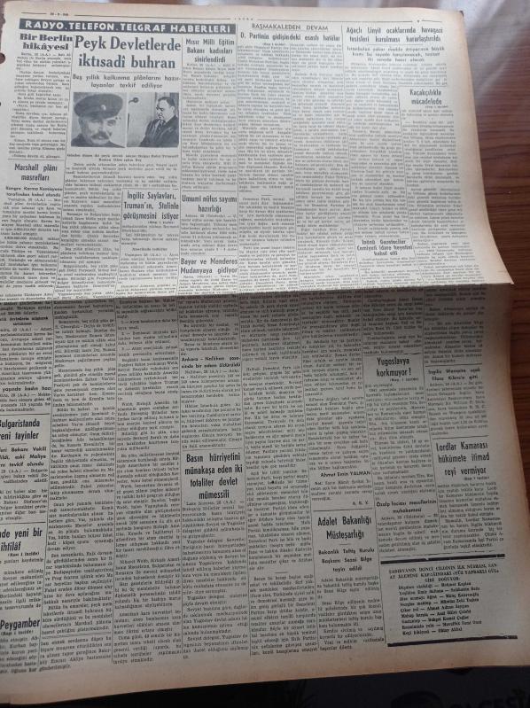 Vatan Gazetesi - 29 Eylül 1949 - Churchill İngiltere'de Yeni Seçim İstedi - İstifa Eden Hukuk Fakültesi Dekanı Profesör Naili Kubalı - Seçim Kanunu İlmi Heyetindeki İhtilaf - Çalışma Bakanı Sadi Irmak - Lütfi Kırdar - İngiliz Saylavları Truman'ın Stalin'le Görüşmesini İstiyor - Behçet Uz - Yugoslavya Diktatörü Tito Rusya'nın Kötü Niyetini Açıkladı - Berlin Oteli Yazan Vicki Baum Yazı Dizisi - Celal Bayar Ve Adnan Menderes Mudanyaya Gidiyor - Marshall Planı Masrafları - Kendini İbrahim Peygamber Sanan Deli - Doçent Nusret Sungu'yu Kaybettik - Taksim Sineması - Nubar Terziyan - Hamiyet Yüceses - Fenerbahçee Suriye Maçı Yapılamadı - Suriye Beşiktaş Karşılaşması - Albayrak Hububat Unları - Beykoz Kundura Fabrikası - Tungsram Ampül - Seiberling Lastikleri, Ahmet Emin Yalman tarafından kaleme alınmıştır. Vatan Gazetesi - 29 Eylül 1949 - Churchill İngiltere'de Yeni Seçim İstedi - İstifa Eden Hukuk Fakültesi Dekanı Profesör Naili Kubalı - Seçim Kanunu İlmi Heyetindeki İhtilaf - Çalışma Bakanı Sadi Irmak - Lütfi Kırdar - İngiliz Saylavları Truman'ın Stalin'le Görüşmesini İstiyor - Behçet Uz - Yugoslavya Diktatörü Tito Rusya'nın Kötü Niyetini Açıkladı - Berlin Oteli Yazan Vicki Baum Yazı Dizisi - Celal Bayar Ve Adnan Menderes Mudanyaya Gidiyor - Marshall Planı Masrafları - Kendini İbrahim Peygamber Sanan Deli - Doçent Nusret Sungu'yu Kaybettik - Taksim Sineması - Nubar Terziyan - Hamiyet Yüceses - Fenerbahçee Suriye Maçı Yapılamadı - Suriye Beşiktaş Karşılaşması - Albayrak Hububat Unları - Beykoz Kundura Fabrikası - Tungsram Ampül - Seiberling Lastikleri adlı eser Türkçe dilindedir.