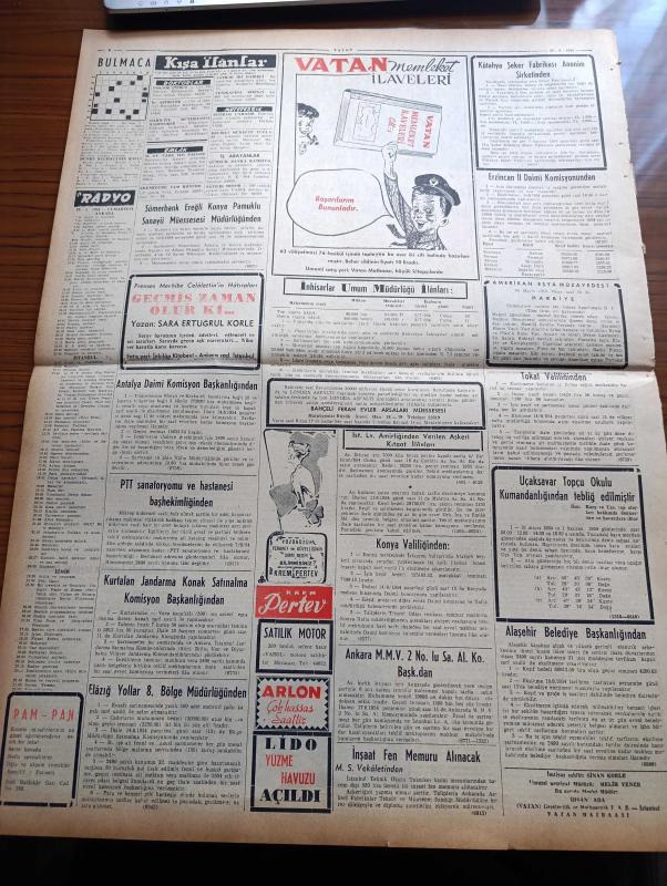 Vatan Gazetesi - 29 Mayıs 1954 - Bakanlar Kurulunda Amerikan Seyahati Görüşüldü - Başbakan Adnan Menderes İngiltere Büyükelçisini Kabul Ederek Müzakerede Bulundu - Habeşistan İmparatoru Haile Selasiye'nin Amerika'da Demeci - Çin Hindinde Komünist Komutanı Giap'ın Bir Demeci Yayınlandı - Ahmet Emin Yalman Köşe Yazısı - Fransa Yeniden 80 Bin Asker Topladı - Atom Enerjisinin Endüstriye Tatbiki - Beş Liralık Banknotların Toplatılması İçin Dava Açıldı - Denizde İsyan Yazan Herman Wouk Yazı Dizisi - Kız Talebisini İğfal Eden İmam Hilmi Toroş'un Sakalı Kesildi - Avrupa Savunma Topluluğu Andlaşması Yazan Abdullah Pulat Gözübüyük - General Ali Fuat Cebesoy'un Siyasi Hatıraları Yazı Dizisi - Kukla Tiyatroları - Everest Fatihi Edmund Hillary Zatürreye Tutulmuş - Jigolo Yazan Daniel Harper Yazı Dizisi - Tokyo'da Yapılan Dünya Serbest Güreş Şampiyonası'ndan Resimler - Türkiye İkinci Güzeli Ayfer Feray Puro Tuvalet Sabunu Kullanıyorum Diyor - Fenerbahçe Amatörleri Beyoğluspor'u 4 1 Yendi - Radyo, Ahmet Emin Yalman tarafından kaleme alınmıştır. Vatan Gazetesi - 29 Mayıs 1954 - Bakanlar Kurulunda Amerikan Seyahati Görüşüldü - Başbakan Adnan Menderes İngiltere Büyükelçisini Kabul Ederek Müzakerede Bulundu - Habeşistan İmparatoru Haile Selasiye'nin Amerika'da Demeci - Çin Hindinde Komünist Komutanı Giap'ın Bir Demeci Yayınlandı - Ahmet Emin Yalman Köşe Yazısı - Fransa Yeniden 80 Bin Asker Topladı - Atom Enerjisinin Endüstriye Tatbiki - Beş Liralık Banknotların Toplatılması İçin Dava Açıldı - Denizde İsyan Yazan Herman Wouk Yazı Dizisi - Kız Talebisini İğfal Eden İmam Hilmi Toroş'un Sakalı Kesildi - Avrupa Savunma Topluluğu Andlaşması Yazan Abdullah Pulat Gözübüyük - General Ali Fuat Cebesoy'un Siyasi Hatıraları Yazı Dizisi - Kukla Tiyatroları - Everest Fatihi Edmund Hillary Zatürreye Tutulmuş - Jigolo Yazan Daniel Harper Yazı Dizisi - Tokyo'da Yapılan Dünya Serbest Güreş Şampiyonası'ndan Resimler - Türkiye İkinci Güzeli Ayfer Feray Puro Tuvalet Sabunu Kullanıyorum Diyor - Fenerbahçe Amatörleri Beyoğluspor'u 4 1 Yendi - Radyo adlı eser Türkçe dilindedir.