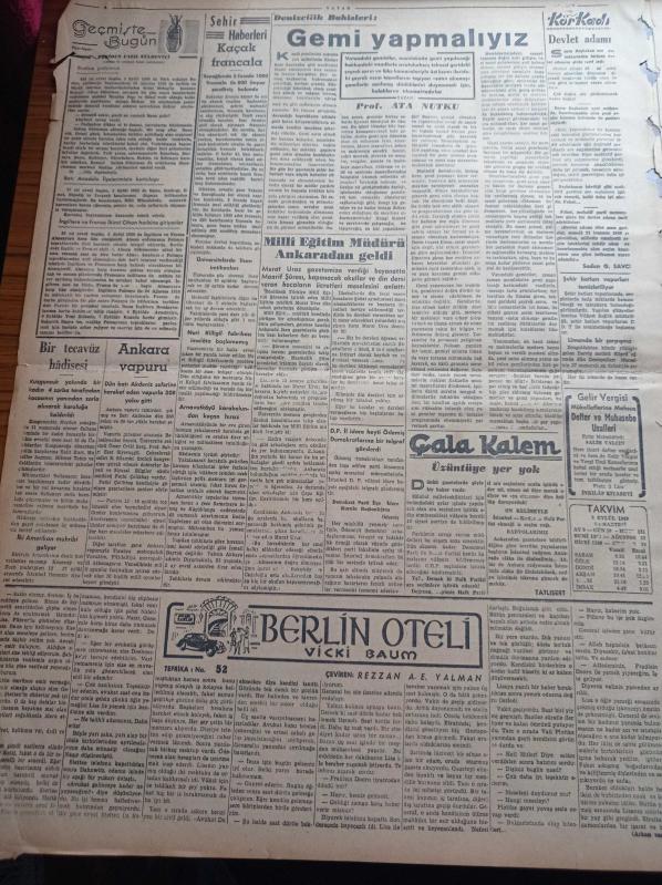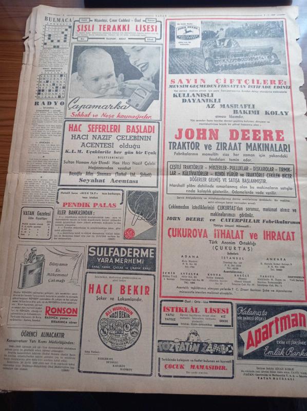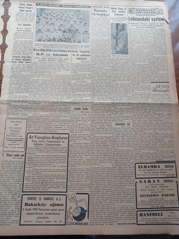 Vatan Gazetesi - 3 Eylül 1949 - Türkiye'nin Büyük Kalkınma Programı - Devlet Bakanı Cemil Sait Barlas'ın Beyanatı - Eski Üniversite Rektörü Cemil Bilsel Vefat Etti - Cahide Sonku Fahri Olarak Şehir Tiyatrosuna Dönüyor - Başbakan Şemsettin Günaltay Erzincan'da Belediyeyi Tenkid Etti - Celal Bayar Mühim Bir Nutuk İrad Ediyor - Ağrı Dağında Nuh'un Gemisi Aranıyor - Sabahattin Ali Öldürüleceğini Biliyormuş - Berlin Oteli Yazan Vicki Baum Yazı Dizisi - At Yarışları Başlıyor - İsmet İnönü Bugün Amiral Power'i Konuk Edecek - Atatürk Ve Doktor Şerafettin Bürge'ye Göre İstanbul - Tutum Bankası - İzmir Fuarı - John Deere Traktör Ve Ziraat Makinaları - Şişli Terakki Lisesi - Hac Seferleri Başladı - Ali Muhiddin Hacı Bekir - Ronson Çakmak - Pendik Palas, Ahmet Emin Yalman tarafından kaleme alınmıştır. Vatan Gazetesi - 3 Eylül 1949 - Türkiye'nin Büyük Kalkınma Programı - Devlet Bakanı Cemil Sait Barlas'ın Beyanatı - Eski Üniversite Rektörü Cemil Bilsel Vefat Etti - Cahide Sonku Fahri Olarak Şehir Tiyatrosuna Dönüyor - Başbakan Şemsettin Günaltay Erzincan'da Belediyeyi Tenkid Etti - Celal Bayar Mühim Bir Nutuk İrad Ediyor - Ağrı Dağında Nuh'un Gemisi Aranıyor - Sabahattin Ali Öldürüleceğini Biliyormuş - Berlin Oteli Yazan Vicki Baum Yazı Dizisi - At Yarışları Başlıyor - İsmet İnönü Bugün Amiral Power'i Konuk Edecek - Atatürk Ve Doktor Şerafettin Bürge'ye Göre İstanbul - Tutum Bankası - İzmir Fuarı - John Deere Traktör Ve Ziraat Makinaları - Şişli Terakki Lisesi - Hac Seferleri Başladı - Ali Muhiddin Hacı Bekir - Ronson Çakmak - Pendik Palas adlı eser Türkçe dilindedir.