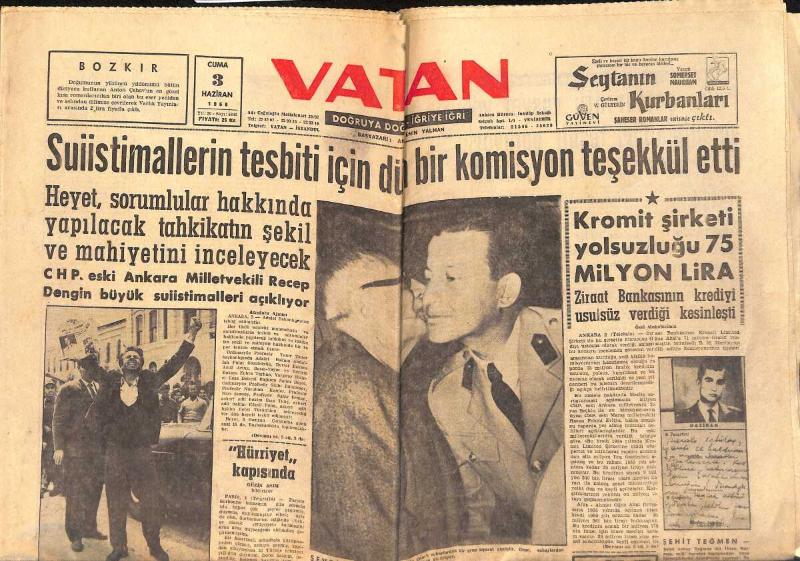 Vatan Gazetesi 3 Haziran 1960 - Anayasa İçin İzahat Verildi - Kromit Şirketi Yolsuzluğu 75 Milyon Lira GZ155954, en son 19 gün önce güncellenmiştir.