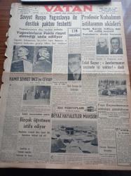 Vatan Gazetesi - 30 Eylül 1949 - Sovyet Rusya Yugoslavya İle Dostluk Paktını Feshetti - Stalin Tito İhtilafını Canlandıran Sembolik Bir Resim - Profesör Naili Kubalı'nın İstifasının Akisleri - Celal Bayar Jandarmanın Seçimde İşi Yoktur - Hamit Şevket İnce'ye Cevap - Truman'ın İmzalayacağı Tarihi Bir Vesika - Hac Mektupları Yazı Dizisi - Berlin Oteli Yazan Vicki Baum Yazı Dizisi - Yeni Amerikan Başkonsolosu La Verne Baldwin- Cumhurbaşkanı İsmet İnönü Yakup Kadri Karaosmanoğlu'nu Kabul Etti - 3. Büyük Harp ve Atom Bombasına Bağlanan Ümit - Ses Tiyatrosu - Yıldız Sineması - Ankara'da Yapılan Atletizm Müsabakaları - Brasso Maden Cilası - Arı Pirinç Unu - Şehir Dram Tiyatrosunda Faust Sahneye Koyan Muhsin Ertuğrul - Sümerbank - Vasfi Rıza Zobu adlı eser, Kitap > Süreli Yayınlar > Gazeteler > Türkiye > Genel > Günlük kategorisinde İkinci El olarak satıştadır.
