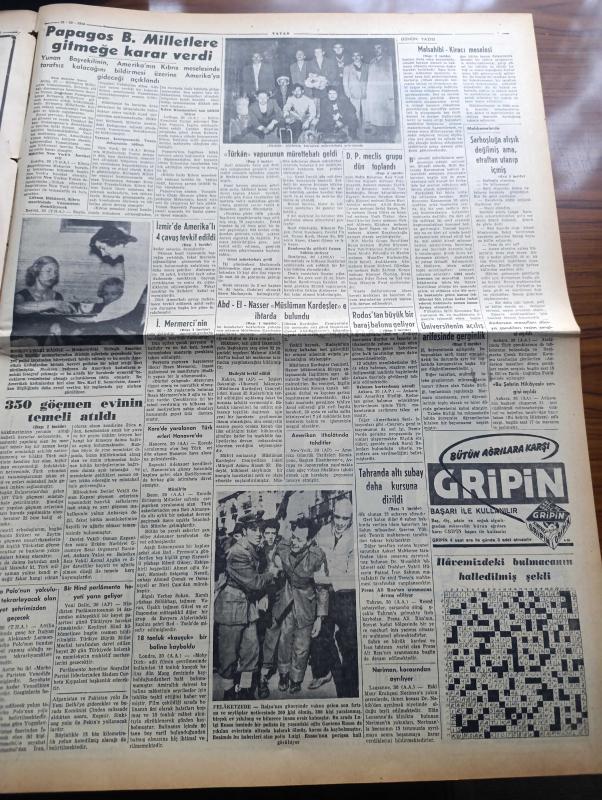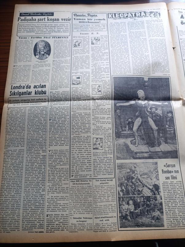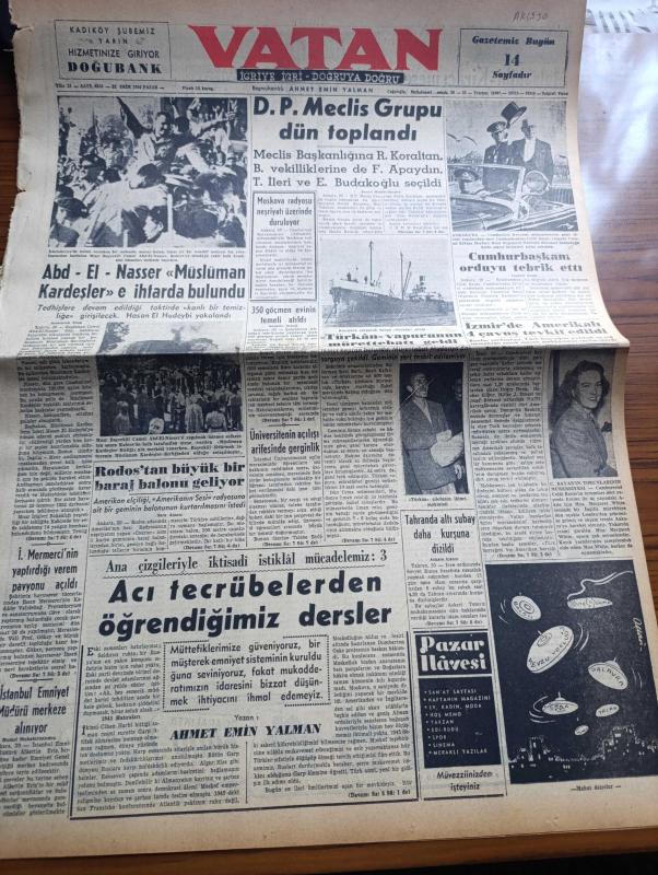 Vatan Gazetesi - 31 Ekim 1954 - Mısır Başbakanı Cemal Abdülnasır Müslüman Kardeşlere İhtarda Bulundu - Hayırsever İhsan Mermerci'nin Yaptırdığı Verem Pavyonu Açıldı - İstanbul Emniyet Müdürü Alaettin Eriş Merkeze Alındı - Ana Çizgileriyle İktisadi İstiklal Mücadelemiz 3 Yazan Ahmet Emin Yalman Köşe Yazısı - Cumhurbaşkanı Celal Bayar Orduyu Tebrik Etti - Moskova Radyosu Neşriyatı Üzerinde Duruluyor - İstanbul Üniversitesi Açılışı Arifesinde Gerginlik - Tahran'da Altı Subay Daha Kurşuna Dizildi - Otomobil Sevdası Yazan İsmail Ateş Yazı Dizisi - Adenauer Saar Anlaşması Yeni Bir Devir Açtı Diyor - Marilyn Monroe Boşandı Diye İntihar Eden Kadın - Anka Ajansına Göre Franco Türkiye'ye Gelecek - Sarışın Bomba Marilyn Monroe'nun Son Filmi Fotoğraf - Osmanlı Tarihinden Sayfalar Yazan Feridun Fazıl Tülbentçi Yazı Dizisi - Kleopatra Yazan Emil Ludwig Yazı Dizisi - Kader Feneri Yazan Jean Martet Yazı Dizisi - Gripin - Squibb İlaçları - Fosfatin Falyer Çocuk Maması - Chirana Diş Tababeti Cihazları adlı eser, Kitap > Süreli Yayınlar > Gazeteler > Türkiye > Genel > Günlük kategorisinde İkinci El olarak satıştadır.