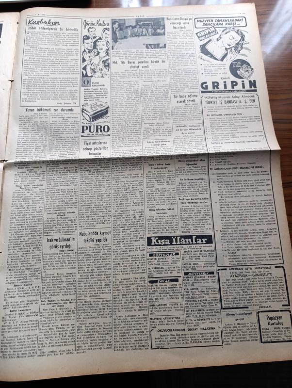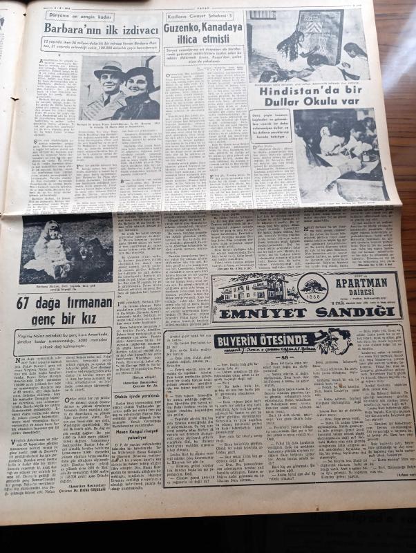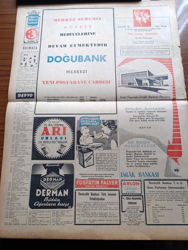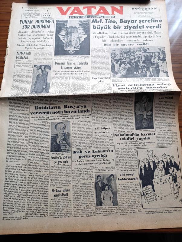 Vatan Gazetesi - 4 Eylül 1954 - Ahmet Emin Yalman Köşe Yazısı - Yunan Hükümeti Zor Durumda - Mareşal Tito Celal Bayar Şerefine Büyük Bir Ziyafet Verdi - Orgeneral Nurettin Baransel İzmir'e Fechteler Erzurum'a Gidiyor - Brezilya'da 250 Bin İşçi Grev Yaptı - Batılıların Rusya'ya Vereceği Nota Hazırlandı - İstanbul Ticaret Odası Başkanı Sait İbrahim Esi - 131 Köprü Yapılacak - Bu Toprak Uyanacaktır Yazan Muzaffer Buyrukçu Yazı Dizisi - Hilton Oteli Müdürleri Vali Fahrettin Kerim Gökay'a İzahat Verdi - Taksim Belediye Gazinosu Fuzuli İşgali Devam Ediyor - Rusya Komünizmin Tek Hâkimi Değildir - Telefon Konuşması %73 Arttı - Askerî Müze Mehter Takımı Başı Hasan Tahsin Parsadan'ın Cenazesi Kaldırıldı - Ölümünün Beşinci Yıldönümünde Cemil Bilsel - Kleopatra Yazan Emil Ludwig Yazı Dizisi - Bu Yerin Ötesinde Yazan Cronin Yazı Dizisi - Güreş Federasyonu Başkanı Vehbi Emre'nin Beyanatı - Galatasaray Kadıköyspor Basketbol Karşılaması - İzmir Atina Boks Karşılaşması - İngiltere'de Yirmi Bin Klüp adlı eser, Kitap > Süreli Yayınlar > Gazeteler > Türkiye > Genel > Günlük kategorisinde İkinci El olarak satıştadır.
