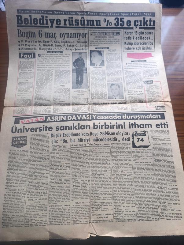 Vatan Gazetesi Sayfa Boyutu : 42*58 cm Sayfa Sayısı: 4 Yıpranma, sararmalar, kupon kesiği ve yırtılmalar zamana bağlı olarak görülebilir Not: normalde 6 sayfa 2 sayfa eksiktir