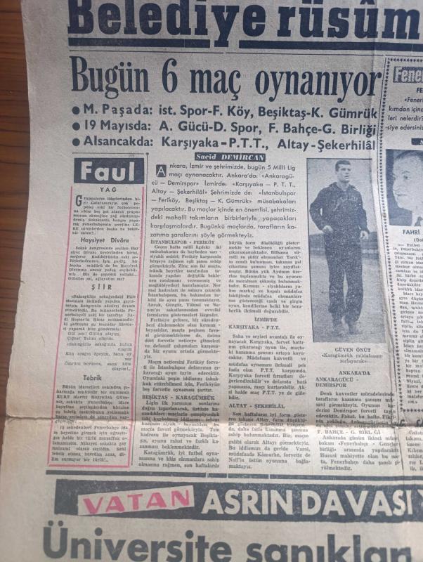 Vatan Gazetesi - 4 Şubat 1961 - Üniversite Olayları Hürriyet Savaşıdır Dedi - Doların Kıymeti Yakında Düşecek - Ragıp Gümüşpala Menfaatçiye Kapılarımız Kapalı Dedi - Brezilya Denizcileri Santa Maria Gemisini İşgal Ettiler - Okuma Yazma Bilmeyene İş Yok - Bulgurdağ'da Beşinci Kuyu Petrol Veriyor - İhtilalci Yüzbaşı Galvao'dan Salazar'a Açık Mektup - Aziz Nesin'in Romanı Kağnı Gölgesindeki İt Yazı Dizisi - Asrın Davası Yassıada Duruşmaları - Galatasaray Kıbrıs'a Bugün Gidiyor - Fenerbahçe Gençlerbirliği Maçı - Beşiktaş Karagümrük Maçı - Spor Toto'nun Bu Hafta Hasılatı - Altay Şekerhilal Maçı - Mehmet Dayanıklıgil 13. İzdivacını yaptı - Amerikan başkanı Kennedy ve Şair Robert Frost Fotoğrafı - H. Spaak'ın yeni görevi ne olacak - takside gece zammı saat 2 ile 5 arası alınabilecek - Lastik iş kolunda asgari ücret tespit ediliyor - esnaf da grev Hakkı istiyor - Akhisar'da bir gecede 46 köpek öldürüldü - nurculuğa ait kitap bulundu - Kurumlar vergisi hakkında odaları birliği'nin görüşü t adlı eser, Kitap > Süreli Yayınlar > Gazeteler > Türkiye > Genel > Günlük kategorisinde İkinci El olarak satıştadır.