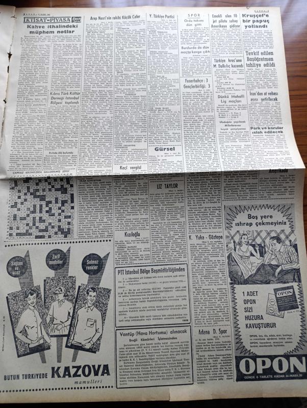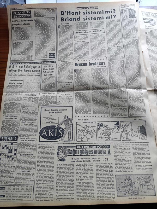 Vatan Gazetesi - 6 Mart 1961 - Kraliçe Elizabeth Bugün Türkiye'ye Geliyor - Yeni Türkiye Partisi 23 İlde Teşkilat Kuruyor - Tanınmış Sinema Yıldızı Elizabeth Taylor'un Hastalığı Devam Ediyor - Öğretmen İhtiyacı 10 Yılda Karşılanacak - Arkeoloji Nazariyesi Değişti - Amerika'da 5,5 Milyon İşsiz Var - Aziz Nesin'in Romanı Kağnı Gölgesindeki İt Yazı Dizisi - D'Hont Sistemi Mi Briand Sistemi Mi Yazan Abdurrahman Konuk - Avrupa İktisadi İşbirliği Teşkilatı OEEC İstanbul'a Gelecek - Emil Galip Sandalcı Köşe Yazısı - Ömer Seyfettin'i Anış Yazan Tarık Binat - Kongo'nun Esrarlı Adamı Gizenga - Taş Devri Çizen Mıstık - Stiv Roper Çizen Saunders Ve Overgard - Tonton Agah Çizgi Roman Sade Yalçın - Polis Kordonu Altında Oynanan Maç Fenerbahçe 3 Gençlerbirliği 3 - Adana Demirspor Takımı İstanbulspor'u 2 1 Yendi - Spor Toto Neticeleri - Şeker Hilal 2 Demirspor 0 - Karşıyaka 6 Göztepe 2 - Dolapdere'de Arap Nasri'nin Rakibi Küçük Cafer Öldürüldü - Orucun Faydaları Yazan Doktor Süheyl Ünver adlı eser, Kitap > Süreli Yayınlar > Gazeteler > Dünya > Günlük kategorisinde İkinci El olarak satıştadır.