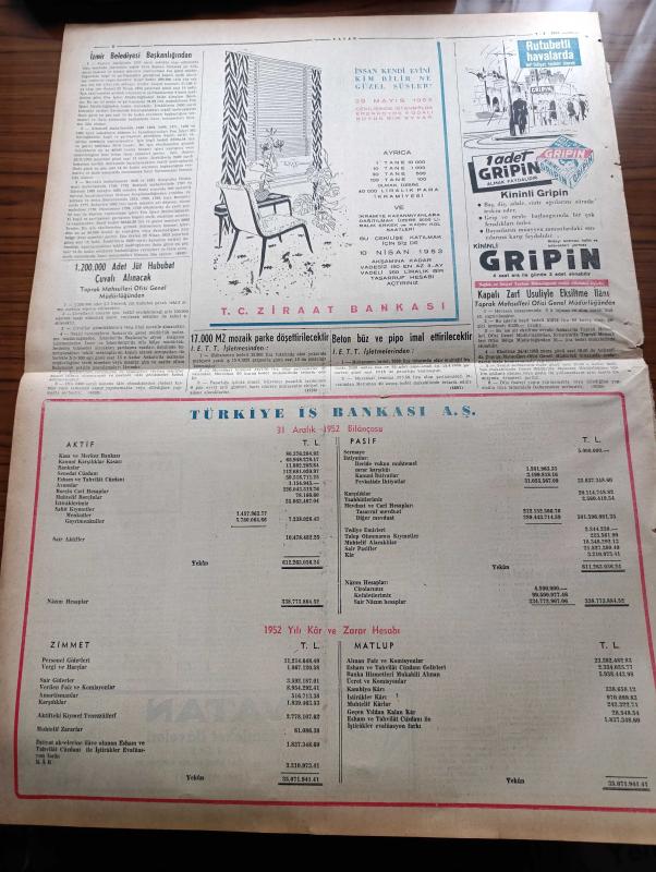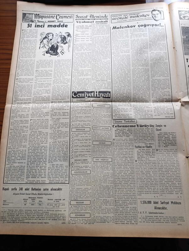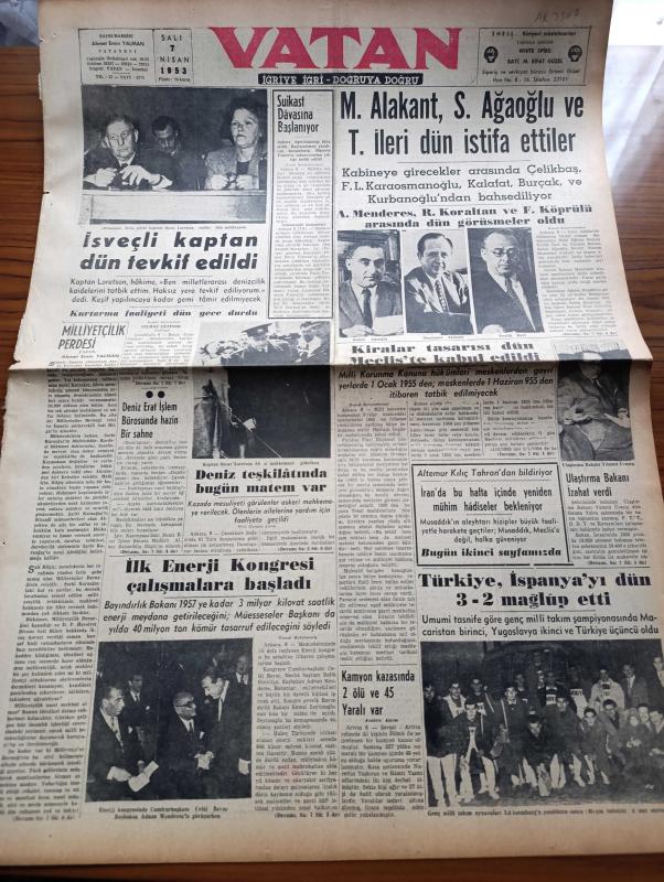 Vatan Gazetesi - 7 Nisan 1953 - Milliyetçilik Perdesi Yazan Ahmet Emin Yalman Köşe Yazısı - Nabalond'ın İsveçli Kaptanı Oscar Loretson Dün Tevkif Edildi - Dumlupınar Denizaltı Faciası - Deniz Teşkilatında Bugün Matem Var - İlk Enerji Kongresi Çalışmalara Başladı - Muammer Alakant Samet Ağaoğlu Ve Tevfik İleri Dün İstifa Ettiler - Ulaştırma Bakanı Yümnü Üresin - Kiralar Tasarısı Dün Mecliste Kabul Edildi - Türkiye İspanya'yı Dün 3 2 Mağlup Etti - Kadınlar Tekkesi Yazan Refik Halid Karay Yazı Dizisi - Altemur Kılıç Tahran'dan Bildiriyor - Tudeh'çilerin Vaziyeti - Batı Almanya Başbakanı Adenauer Amerika'da - Mapusane Çeşmesi Yazan Mehmet Yanık Yazı Dizisi - Kremlin'in Yeni Hükümdarı Georgie Malenkov Yazan Albay İlya Molin Yazı Dizisi - Viyolonsel Resitali - Çocuk Köşesi - Macera Bu Akşam Başlıyor Yazan Robert Collard Yazı Dizisi - Bulmaca - Türk Mısır Ticaret Anlaşması - Gripin - Doğubank - Eminönü Kızılay Kongresi Hadisesinin Tahkikatı Bitti - Kenyatta'nın Mau Mau Şefi Olduğu Anlaşıldı adlı eser, Kitap > Süreli Yayınlar > Gazeteler > Türkiye > Genel > Günlük kategorisinde İkinci El olarak satıştadır.