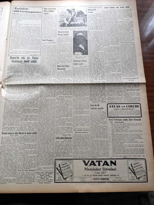 Sayfa Boyutu : 42*58 cm Sayfa Sayısı: 8 Vatan Gazetesi Yıpranma, sararmalar, kupon kesiği ve yırtılmalar zamana bağlı olarak görülebilir Not: Cilt Çıkmasıdır Bilgilendirme : Tam takım gazetedir