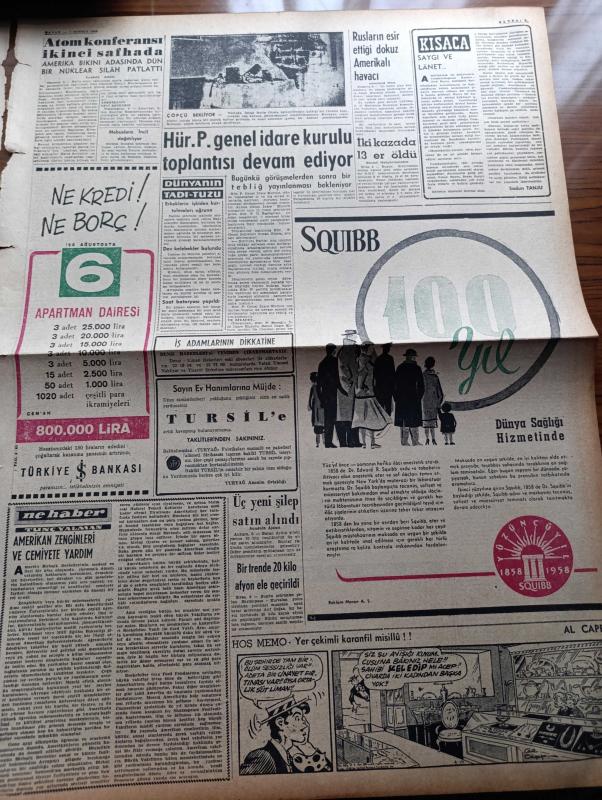 Vatan Gazetesi - 7 Temmuz 1958 - Yunanistan Artık Uyanmalı Yazan Ahmet Emin Yalman Köşe Yazısı - İsmet İnönü Dün İktidardan Acı Bir Dille Şikayet Etti - Bağdat Paktı İle Alakalı Olarak Geniş Çapta Temaslar Yapılıyor - Cumhurbaşkanı Celal Bayar Umurbey'e Gitti - Kıbrıs Türkiye'nin Olacaktır Bu Bir Tabiat Kanunudur - Lefkoşe'de Örfi İdare İlan Edildi - Yandan Akıyor Yandan Adnan Veli'nin Yeni Romanı Yazı Dizisi - Taş Devri Çizen Mıstık - Çakaralmaz Hafiye Çizen Eflatun Nuri - Atom Konferansı İkinci Safhada - Gina Lollobrigida'yı Gina Yapan Adam Kocası Mirko - Şu Ölüm Denilen Şey Yazan Frederic Dard Yazı Dizisi - Burç Falı - 3,5 Yürekli Şerif Çizen OCKS - Rüzgar Çelebi Çizen Guy Bara - Stiv Roper Çizen Saunder Ve Waggon - İstanbul'da Sinemalar Tiyatrolar Programı - Fay Temizleme Tozu - Fenerbahçe'de İktidarı Tarafsızlar Aldı - Osman Kavrakoğlu Raif Dinçkök Firuzan Tekil Ve Faruk Ilgaz Yeni İdare Heyetine Girdiler - Transfer - Zeki Rıza Sporel Fotoğraf - Müslim Bağcılar Konuşuyor adlı eser, Kitap > Süreli Yayınlar > Gazeteler > Türkiye > Genel > Günlük kategorisinde İkinci El olarak satıştadır.