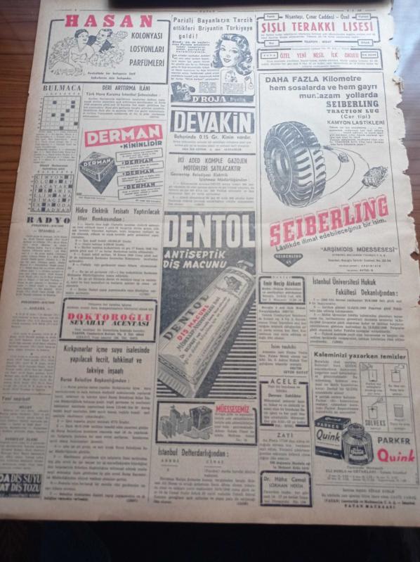 Vatan Gazetesi - 8 Eylül 1949 - Demokrat Parti'nin Başbakan Şemsettin Günaltay'a Cevabı - Adnan Menderes - Celal Bayar - Yeni Bir Senirkent Hadisesi - İsmet İnönü Mareşal Fevzi Çakmak'ı Ziyarete Gitti - Lütfi Kırdar - Adalet Sarayı Projesine İtiraz - Habeşistan Mareşal Badoglio İle Graziani'yi İtalya'dan İstedi - Berlin Oteli Yazan Vicki Baum Yazı Dizisi - Rüştü Diktürk Tahliye Edildi - Feridun Fazıl Tülbentçi - Bernard Shaw - İkinci Büyük Hidroelektrik Tesisatı - Nuh'un Gemisi Ağrı'da Değil Cudi Dağı'ndaymış - Hitler Rusya'yı İstilaya Nasıl Karar Vermişti - Mussolini- Dentol Antiseptik Diş Macunu - Derman Ağrı Kesici - Hasan Kolonyası Losyonları Parfümleri - Droja Briyantini - Seiberling Kamyon Lastikleri - Şişli Terakki Lisesi - Devakin adlı eser, Kitap > Süreli Yayınlar > Gazeteler > Türkiye > Genel > Günlük kategorisinde İkinci El olarak satıştadır.
