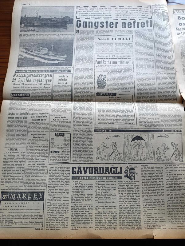 Vatan Gazetesi - 9 Eylül 1961 - Devlet Başkanı Cemal Gürsel Parkta Hakları Sohbet Etti - Memurların Tarafsızlığı İçin Tebliğ Yayınlandı - Profesör Doktor Yavuz Abadan Köşe Yazısı - Mümtaz Tarhan Beraat Etti - Rusların Sergisine İzin Yok - Sabotajcıların Sabık Demokrat Partili Olduğu Anlaşıldı - Cumhuriyet Halk Partisi 38 Yaşında - Sendikalı İşçilere Baskı Yapılıyormuş - Gavurdağlı Fatma Serhan'ın Romanı Yazı Dizisi - Milliyet Sosyal Güvenlik Kongresi 23 Eylül'de Toplanıyor - Gangster Nefreti Yazan Necati Cumalı Köşe Yazısı - Paul Rotha'nın Hitler'i - Rüzgar Çelebi Çizen Guy Bara - Batı Almanya Askerlik Süresini Ve Asker Mevcudunu Arttırmak İstiyor - Oktay Akbal Köşe Yazısı - İsrail'de Ben Gurion Kabineyi Kurmaktan Vazgeçti - Dünya Nelere Gülüyor Karikatür - Cezayir'in 40 Temmuz İhtilâli - Doludizgin Samim Kocagöz'ün Romanı Yazı Dizisi - Noyan Amca Dert Dinliyor - Vita Yağ - Opon Ağrı Kesici - Demirspor Karagümrük İle Mithatpaşa Stadında Karşılaşacak - Fenerbahçeli Tuncer Kabaner adlı eser, Kitap > Süreli Yayınlar > Gazeteler > Türkiye > Genel > Günlük kategorisinde İkinci El olarak satıştadır.
