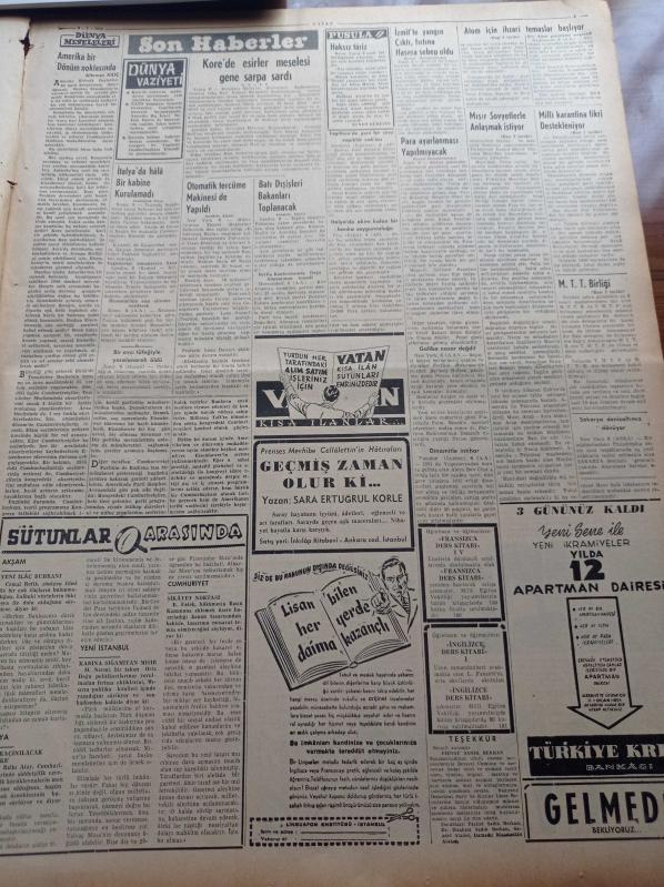 Vatan Gazetesi - 9 Ocak 1954 - Milli Karantina Fikri Destekleniyor - Kahire Hadisesi İçin Meclise İki Sual Takriri Verildi - Kahire Elçimiz Hulusi Fuat Tugay Dün Şehrimize Geldi - Milli Türk Talebe Birliği Federasyonla Birleşiyor - Mısır Sovyetlerle Anlaşmak İstiyor - Amerika'da Celal Bayar'ı Karşılama Hazırlığı - Göç Yolları Tıkadı Yazan İlhan Engin Yazı Dizisi - Kore'de Esirler Meselesi Gene Sarpa Sardı - Ruslar Tarzan Filmine Aleyhtar - Tanrı İle Şeytanı Barıştıran Feylezof Giovanni Papini - Fotoğraflarla Haberler - Veba Yazan Albert Camus Yazı Dizisi - Galatasaray Karagücü Bugün Karşılaşıyor - Fertun Gordien Disk Atma Rekorunu Kırabilecek Mi - Foster Dulles'a Göre NATO İyi Durumda Fakat Temeli Zayıf - Good Year - Radyo - Bulmaca, Ahmet Emin Yalman tarafından kaleme alınmıştır. Vatan Gazetesi - 9 Ocak 1954 - Milli Karantina Fikri Destekleniyor - Kahire Hadisesi İçin Meclise İki Sual Takriri Verildi - Kahire Elçimiz Hulusi Fuat Tugay Dün Şehrimize Geldi - Milli Türk Talebe Birliği Federasyonla Birleşiyor - Mısır Sovyetlerle Anlaşmak İstiyor - Amerika'da Celal Bayar'ı Karşılama Hazırlığı - Göç Yolları Tıkadı Yazan İlhan Engin Yazı Dizisi - Kore'de Esirler Meselesi Gene Sarpa Sardı - Ruslar Tarzan Filmine Aleyhtar - Tanrı İle Şeytanı Barıştıran Feylezof Giovanni Papini - Fotoğraflarla Haberler - Veba Yazan Albert Camus Yazı Dizisi - Galatasaray Karagücü Bugün Karşılaşıyor - Fertun Gordien Disk Atma Rekorunu Kırabilecek Mi - Foster Dulles'a Göre NATO İyi Durumda Fakat Temeli Zayıf - Good Year - Radyo - Bulmaca adlı eser Türkçe dilindedir.