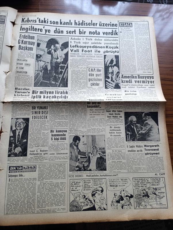 Vatan Gazetesi - Turkish Newspaper - 15 Temmuz 1958 - Bağdat hükümet darbesi yazan Ahmet Emin Yalman Başmakale - Irak'ta hükümet darbesi - Kral Faysal hapsedilerek cumhuriyet ilan olundu - Prens abdülilah linç edildi - Nuri Sait Paşa'nın akıbeti bilinmiyor - İran şahı ve Pakistan Cumhurbaşkanı Dün Ankarada Esenboğa havaalanında karşılanırken fotoğraf - Türkiye İran Pakistan arasında Ankara'da üçlü toplantı yapılıyor - Şah Rıza Pehlevi ile İskender Mirza dün Başkente geldi - Celal Bayar Adnan Menderes ve Bakanlar dün Ankara havaalanında uçaktan indikleri sırada fotoğraf - Irak'a şimdilik müdahale edilmiyor - Ürdün radyosuna göre Sadık kuvvetler bağdat'a yürüyor - yandan akıyor yandan yazan Adnan Veli Yazı Dizisi - kıbrıs'taki kanlı hadiseler üzerine İngiltere'ye dün sert bir nota verdik - Hacılar Tarsus vapurunu kirletti - Dansöz Gönül mahkemede hakim kararıyla soyundu - salyangoz bile yazan Emil Galip Sandalcı - burç falınız - Kadri Aytaç'ın durumu fotoğraf adlı eser, Kitap > Süreli Yayınlar > Gazeteler > Türkiye > Genel > Günlük kategorisinde İkinci El olarak satıştadır.
