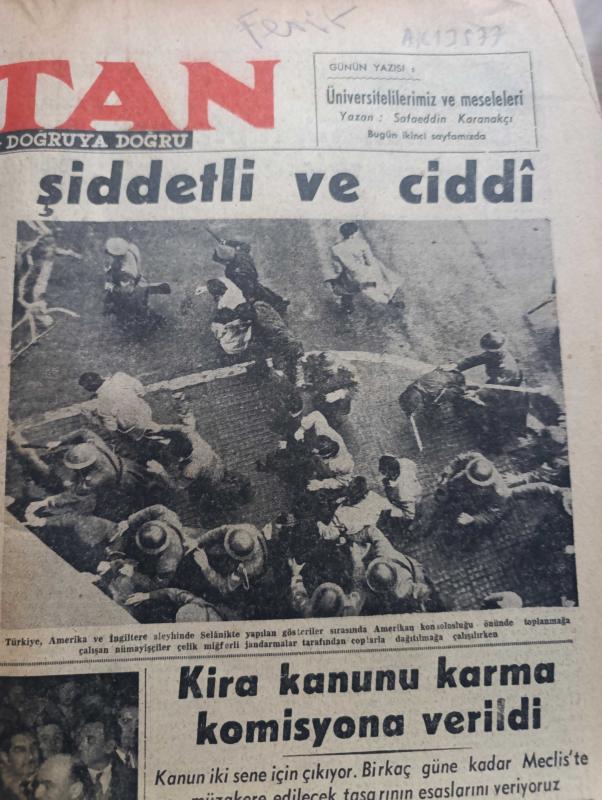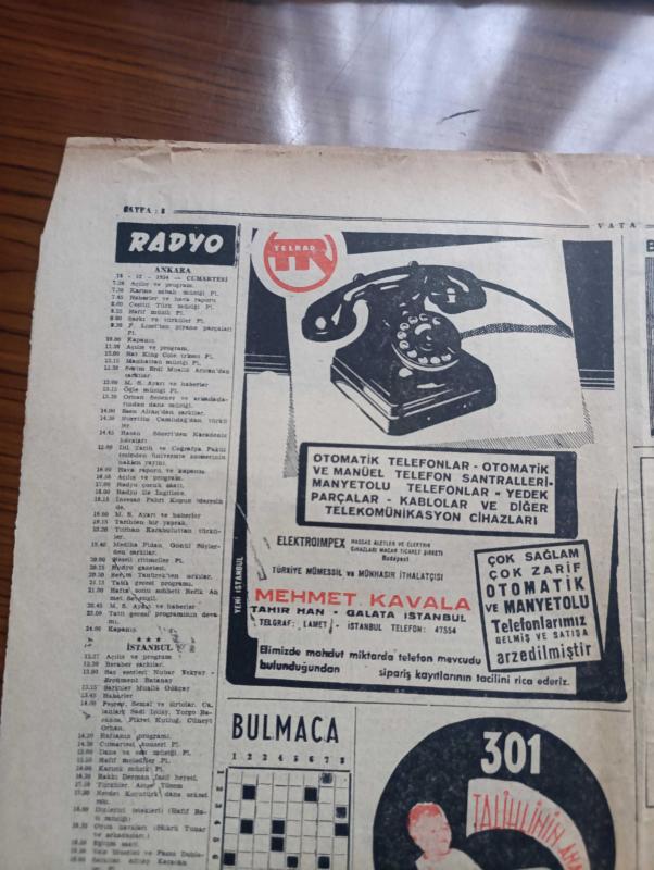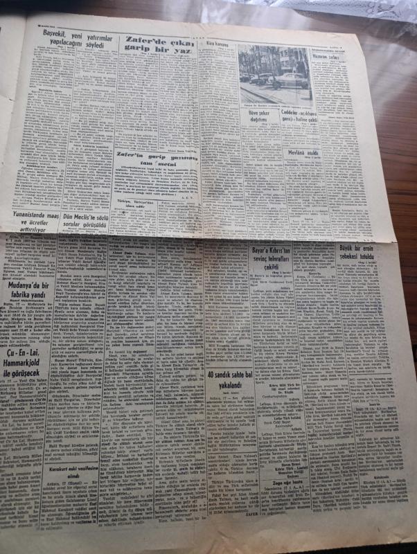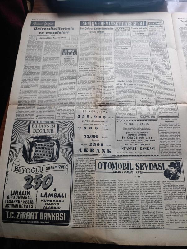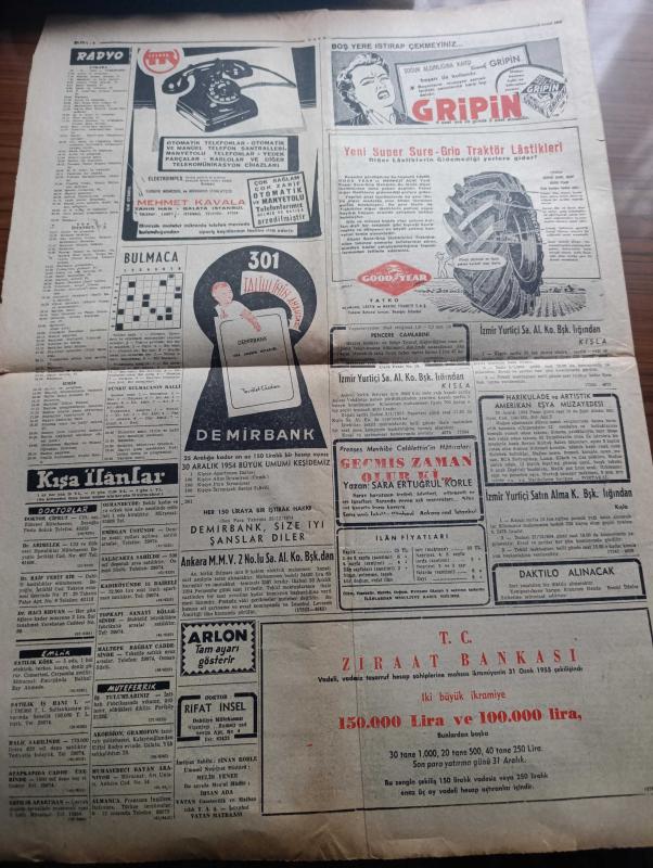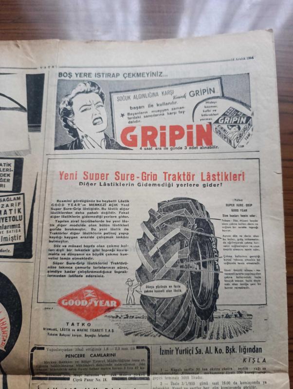 Vatan Gazetesi - Turkish Newspaper - 18 Aralık 1954 - huzurun sırları yazan Ahmet Emin Yalman Başmakale - Yunan hükümeti şiddetli ve ciddi tedbirler alıyor - Atina'da bugün yapılacak mitingler - Papagos hadiseleri takbih ettiğini bildirdi - Selanikte Amerikan konsolosluğu önünde toplanmaya çalışan nümayişçileri çelik miğferli jandarmalar coplarla dağıtmaya çalışırlarken Fotoğrafı - Celal Bayar'a kıbrıs'tan Sevinç telgrafları çekildi - başvekil Adnan Menderes yeni yatırımlar yapılacağını söyledi - Zafer gazetesinde çıkan garip bir yazı - otomobil sevdası Yazan İsmail Ateş Yazı Dizisi - Taksim Harbiye arasında caddeler açık hava garajı haline geldi fotoğraf - 40 sandık sahte bal yakalandı - Ziraat Bankası - Gripin - İstanbul Ankara İzmir Radyosu Programı - Good Year lastikleri - bulmaca - Doktor Rifat İnsel - İstanbul Konya Ve Ankara'da Mevlana anması yapıldı Fotoğrafı - kira kanunu karma komisyonu verildi - İzmir valiliği'ne tayin edilen Kemal Hadımlı Fotoğrafı - Venizelos Kıbrıs fikri adlı eser, Kitap > Süreli Yayınlar > Gazeteler > Türkiye > Genel > Günlük kategorisinde İkinci El olarak satıştadır.