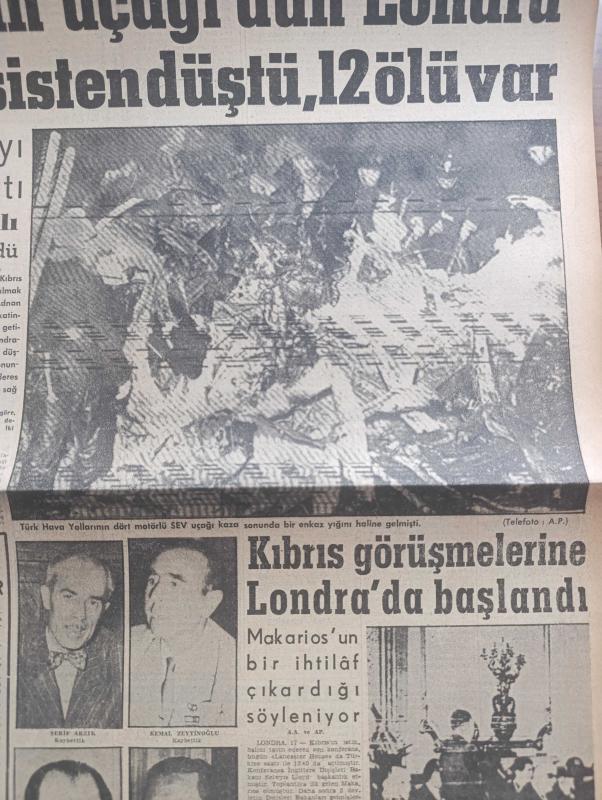 Vatan Gazetesi - Turkish Newspaper - 18 Şubat 1959 - hazin bir temaşa yazan Ahmet Emin Yalman Başmakale - Adnan Menderes'in uçağı Dün Londra civarında sisten düştü 12 ölü var - Türk Hava yolları'nın 4 motorlu SEV uçağı kaza sonunda bir enkaz yığını haline gelmişti fotoğraf - Emin Kalafat ve Arif Demirer Yaralı fotoğraf - Server Somuncuoğlu Ve Kemal Zeytinoğlu öldü - uçakta bulunanların listesi - Melih Esenbelin durumu bilinmiyor - Başbakan Adnan Menderes hareketinden önce Yeşilköy'de uğurlanırken fotoğraf - Kıbrıs görüşmelerine Londra'da başlandı - Kabine Çankaya'da Celal Bayar'ın riyaseti altında toplandı - Orhan Kemal'in bir büyük hikayesi küçücük Yazı Dizisi - Petrol işçileri ile Shell arasında ihtilaf çıktı - Atatürk heykeli için dün toplantı yapıldı fotoğraf - fosforlu Cevriye filme alındı - olmak ya da olmamak yazan Oktay Akbal - Briç masasında cinayet yazan agatha christie yazı dizisi - Celal Bayar İtalya ve Kore'ye gidecek - Vefa Hilmi Kiremitçiyi bırakmayacak fotoğraf, Ahmet Emin Yalman tarafından kaleme alınmıştır. Vatan Gazetesi - Turkish Newspaper - 18 Şubat 1959 - hazin bir temaşa yazan Ahmet Emin Yalman Başmakale - Adnan Menderes'in uçağı Dün Londra civarında sisten düştü 12 ölü var - Türk Hava yolları'nın 4 motorlu SEV uçağı kaza sonunda bir enkaz yığını haline gelmişti fotoğraf - Emin Kalafat ve Arif Demirer Yaralı fotoğraf - Server Somuncuoğlu Ve Kemal Zeytinoğlu öldü - uçakta bulunanların listesi - Melih Esenbelin durumu bilinmiyor - Başbakan Adnan Menderes hareketinden önce Yeşilköy'de uğurlanırken fotoğraf - Kıbrıs görüşmelerine Londra'da başlandı - Kabine Çankaya'da Celal Bayar'ın riyaseti altında toplandı - Orhan Kemal'in bir büyük hikayesi küçücük Yazı Dizisi - Petrol işçileri ile Shell arasında ihtilaf çıktı - Atatürk heykeli için dün toplantı yapıldı fotoğraf - fosforlu Cevriye filme alındı - olmak ya da olmamak yazan Oktay Akbal - Briç masasında cinayet yazan agatha christie yazı dizisi - Celal Bayar İtalya ve Kore'ye gidecek - Vefa Hilmi Kiremitçiyi bırakmayacak fotoğraf adlı eser Türkçe dilindedir.