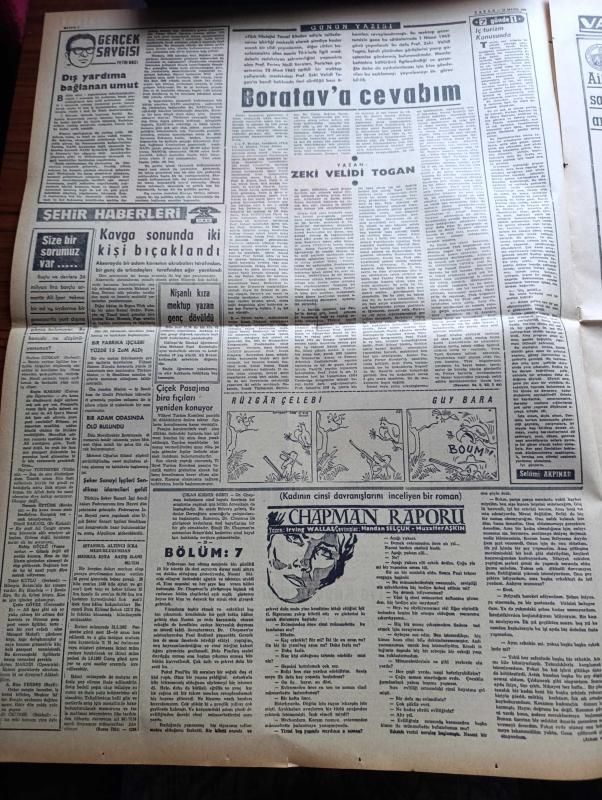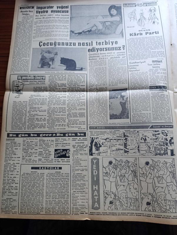 Vatan Gazetesi - Turkish Newspaper - 19 Mayıs 1962 - ne için olmasın yazan Şevket Süreyya Aydemir Başmakale - İsmet İnönü kumandanlar ile görüştü - Bugün 19 Mayıs bütün yurtta törenler yapılıyor - Başbakan İsmet İnönü 28. Tümeni gezdi - Ragıp Gümüşpala koalisyonu bozup devleti meçhul bir yöne sevk etmeyeceğiz dedi - Ticaret Bakanı İhsan Gürsan sanayicilerin yüzü yakında girecek dedi - Lebit Yurdoğlu Adalet Partisini suçladı - 5 yıllık planlı kalkınma açık oturumu dün başladı - CHP genel sekreter yardımcısı Kemal Satır oturmayan bir rejimde ihtilaller beklenebilir - siyasi suçu olmayanlar için af yok - genelkurmay Başkanı Orgeneral Cevdet Sunay Paris'e gitti - Avni Doğan bakanlıktan istifa ettim diyor - Boratav'a cevabım yazan Zeki Velidi Togan - komünist ajanı Eisenhower yazan Oktay Akbal - imparator yeğeni tiyatro oyuncusu Thien Hung fotoğraf - Üç Perdelik cinayet yazan agatha christie çeviren Ülkü Tamer Yazı Dizisi - futbolda ligin baraj düğümü bu hafta çözülüyor - Fenerbahçe adlı eser, Kitap > Süreli Yayınlar > Gazeteler > Türkiye > Genel > Günlük kategorisinde İkinci El olarak satıştadır.