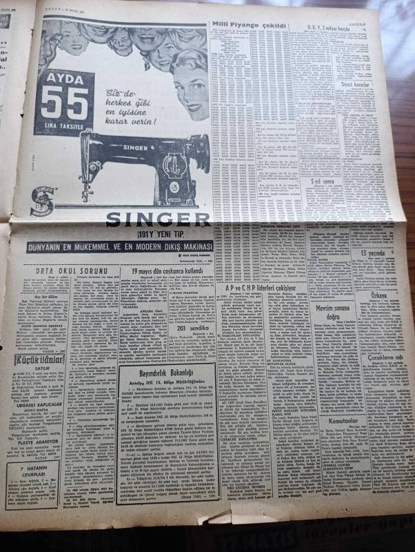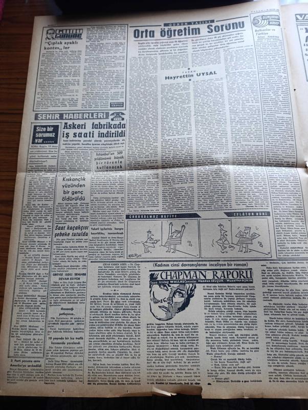 Vatan Gazetesi - Turkish Newspaper - 20 Mayıs 1962 - pusudaki diktatörlük yazan Cemal Reşit Eyüboğlu Başmakale - Adalet Partisi ve Cumhuriyet Halk Partisi liderleri çekişiyor - İsmet İnönü Ragıp Gümüşpala'nın demirci için her şey iki gün sonraki toplantıda anlaşılacak dedi - 19 Mayıs coşkunca kutlandı - Mithatpaşa stadında yapılan dünkü törende okulların bayraktarları fotoğraf - denizciler güç bir hareketi başarıyla yaparken fotoğraf - Devlet Demir yolları 2 milyar lira borçlu - siyasi kararlar 5 yıllık iktisadi plana uymalı - askeri fabrikada iş saati indirildi - Cannes film festivali'nin bitmesine yakın soyunma skandalı fotoğraf - Salazar gençliğin bütün faaliyetine yasak koydu - Meşrutiyet kıraathanesi Yazan Rıfat Ilgaz - Jeff Chandler Ayhan Işık ve Fer Nandel fotoğraf - Üç perdelik cinayet yazan agatha christie çeviren Ülkü Tamer - Yeşildirek Kader maçında Dün Gençlerbirliği de mağlup etti 2 0 - Kasımpaşa 1 Demirspor 0 - Galatasaray yarın kampa gidiyor - Dünya Kupası yaklaşırken adlı eser, Kitap > Süreli Yayınlar > Gazeteler > Türkiye > Genel > Günlük kategorisinde İkinci El olarak satıştadır.