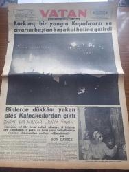 Vatan Gazetesi - Turkish Newspaper - 27 Kasım 1954 - korkunç bir yangın kapalıçarşı ve civarını baştan başa kül haline getirdi fotoğraf - binlerce dükkanı yakan ateş kalpakçılardan çıktı zarar 1 milyar liraya yakın - itfaiye fırın ağzını andıran kapıdan içeri giremiyor fotoğraf - 5 itfaiye eri yaralandı 2 polis ve bazı Çarşı bekçilerinin yanmış olmasından endişe ediliyor - otomobil sevdası Yazan İsmail Ateş Yazı Dizisi - Florence Nightingale İstanbul tesisi müteşebbis heyeti toplandı - hak milletindir yazan Ahmet Emin Yalman Başmakale - Türk Gökü II tatbikati bitti - Adnan Menderes pakistan'a gidecek - Bedii Faik tekrar tahliye talep edecek - Türkiye ile Arap Devletleri arasında karayolu yapılacak - sanat aleminde yazan Ercüment Berker - Vörös Lobogo üçüncü maçını bugün Fenerbahçe ile yapıyor - dünya güreş şampiyonası - İngiliz futbolcuların muhtemel grevi - sporcu Erol Erükal'ın centilmenliği - futbol sahalarına kauçuk döşenecek - Morfin satan fabrikatör Necati Sarvazlar tutuldu adlı eser, Kitap > Süreli Yayınlar > Gazeteler > Türkiye > Genel > Günlük kategorisinde İkinci El olarak satıştadır.