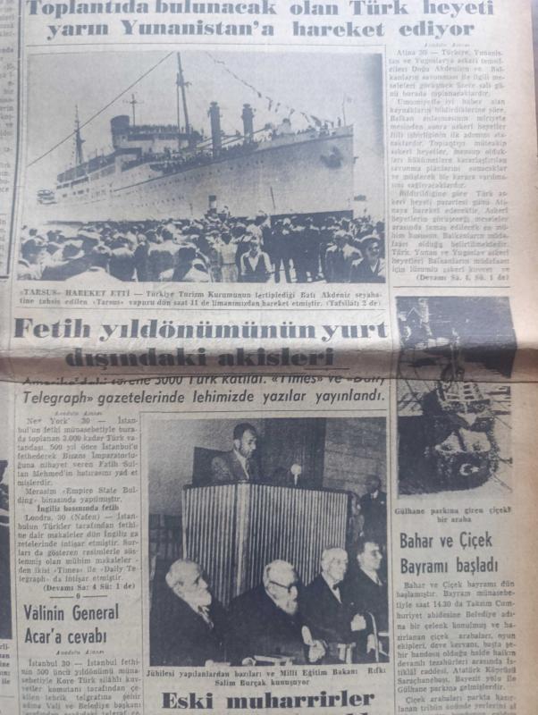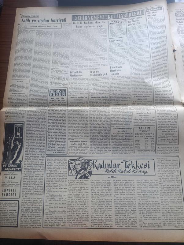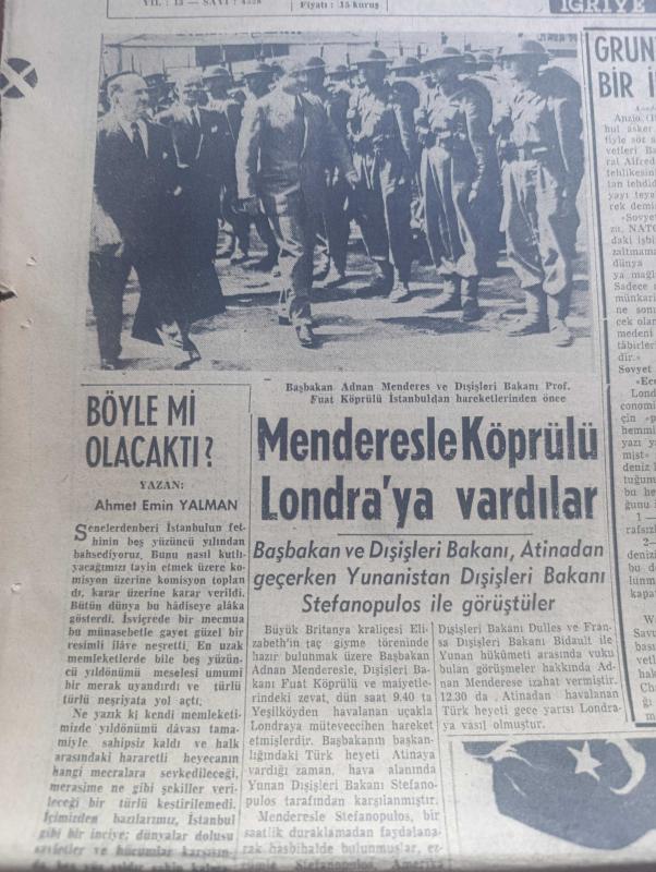 Vatan Gazetesi - Turkish Newspaper - 31 Mayıs 1953 - böyle mi olacaktı yazdan Ahmet Emin Yalman Başmakale - Adnan menderes'te Fuat Köprülü Londra'ya vardılar fotoğraf - Üçlü pakt askeri temsilcileri atinada toplanıyorlar - Tarsus vapuru hareket etti fotoğraf - cumhurbaşkanı Celal Bayar Kore'ye gidecek değiştirme birliğinin tatbikatında fotoğraf - Hilton oteli için Amerika'ya gidecek olanlar - Bahar ve çiçek bayramı başladı - Gülhane parkına giren çiçekli bir araba fotoğraf - fetih yıldönümünün yurt dışındaki akisleri - eski muharrirler için jübile yapıldı yapıldı fotoğraf - Kadınlar tekkesi yazan Refik Halit Karay Yazı Dizisi - Fatih ve vicdan hürriyeti yazan avukat Mustafa Emil Elöve - Türkiye İş Bankası Nişantaşı ajansı açılışı fotoğraf - İstanbul kapılarında fethin büyük tarihi romanı yazan Feridun Fazıl Tülbentçi Yazı Dizisi - Afyon fiyatları kararlaştırıldı - İstanbul Ankara İzmir Radyosu Programı - Şehir Tiyatrosu Ankara dram kısmında Konsolos - Atlas sineması ters yüz oyunu adlı eser, Kitap > Süreli Yayınlar > Gazeteler > Türkiye > Genel > Günlük kategorisinde İkinci El olarak satıştadır.