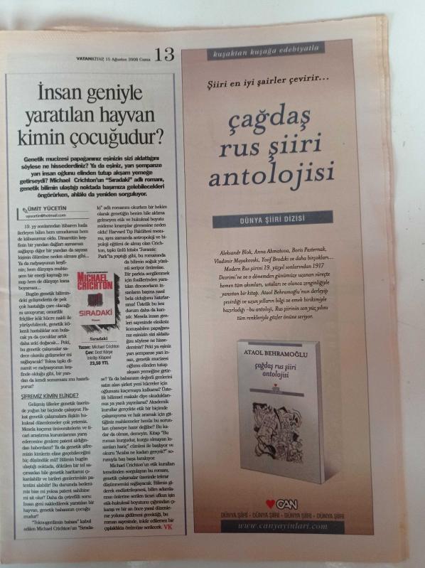 Vatan Kitap Gazetesi - 15 Ağustos 2008 - Sayı 53 - Kültür Bakanı Ertuğrul Günay Orhan Pamukla Övünüyorum - Jorge Luis Borges Fotoğrafı - Çakıl Taşlarıyla Yazılan Şiirler - Sürüngenlerin En Güzeli - Guantanamo adlı eser, Kitap > Süreli Yayınlar > Gazeteler kategorisinde İkinci El olarak satıştadır.