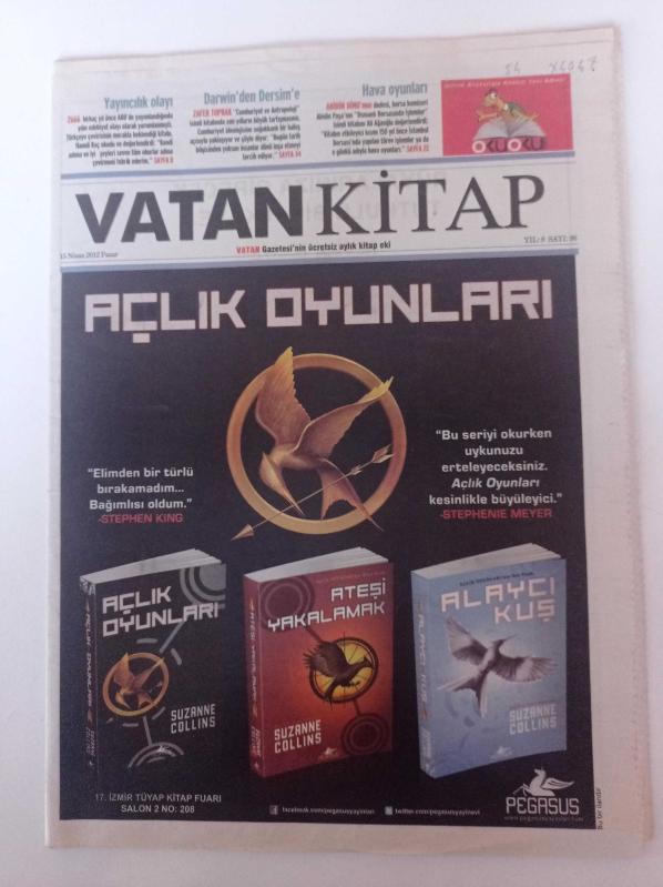 Vatan Kitap Gazetesi - 15 Nisan 2012 - Sayı 98 - Açlık Oyunları - Ateşi Yakalamak - Alaycı Kuş - Suzanne Collins - Darwin'den Dersim'e - Zafer Toprak - Abidin Dino - Osmanlı Borsasında İşlemler - Hava Oyunları adlı eser Türkçe dilindedir.