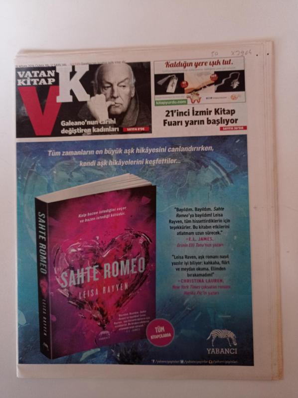 Vatan Kitap Gazetesi - 15 Nisan 2016 - Sayı 146 - Galeano'nun Tarihi Değiştiren Kadınları -21. İzmir Kitap Fuarı Başlıyor - Grinin Elli Tonu - Christina Lauren - Harika Piç- Sahte Romeo - Yabancı Yayınevi adlı eser Türkçe dilindedir.