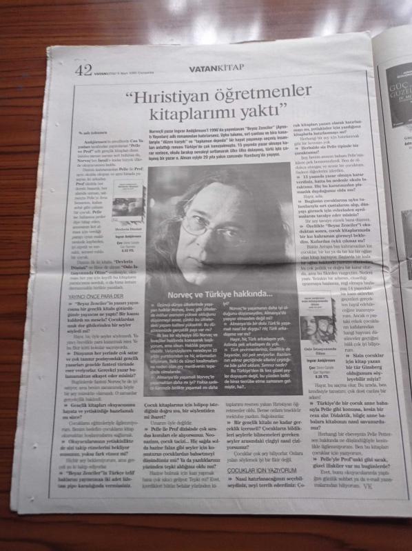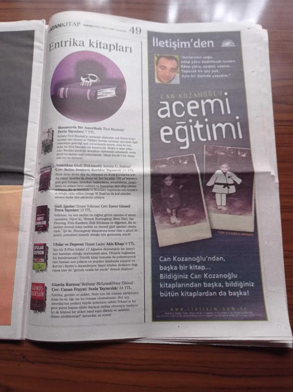 Vatan Kitap Gazetesi - 9 Mart 2005 - Sayı 56 - İngvar Ambjörnsen Hristiyan Öğretmenler Kitabımı Yaktı - Yaşayan Devrimci Fidel Castro - Müge İplikçi -Oğuz Atay Fotoğrafı - Yakınları Tutunamayanlar'ın Yazarını İlk Kez Anlattı - Zeynep Ögel - Okşan Ögel - George Bush Hangi Kitapları Okuyor - Romancı Kadınlar 8 Mart'ı Umursamadı - Beyaz Zencilerden Sonra Çocuk Kitapları - Nazlı Eray - Susanna Tamaro - Yaşam Kullanma Kılavuzu adlı eser, Kitap > Süreli Yayınlar > Gazeteler kategorisinde İkinci El olarak satıştadır.