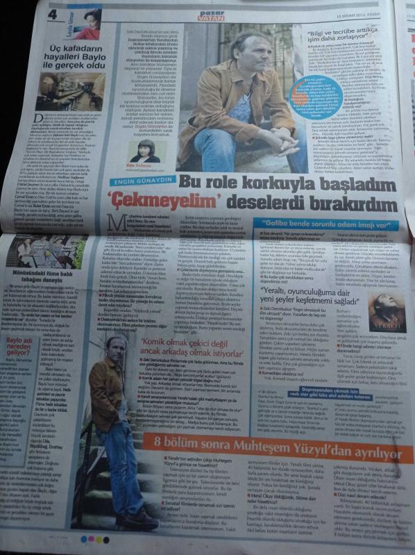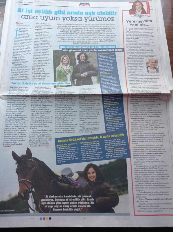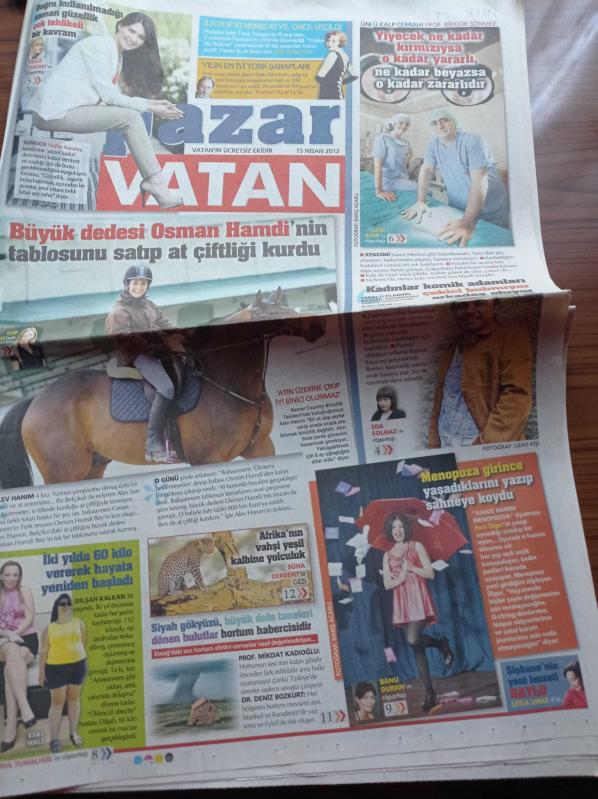 Vatan Pazar Gazetesi - 15 Nisan 2012 - Alev Hanım'ın Büyük Dedesi Osman Hamdi'nin Tablosunu Satıp At Çiftliği Kurdu - Yeraltı Filminin Başrol Oyuncusu Engin Günaydın - Esra Ülger Menopoza Girince Yaşadıklarını Yazıp Sahneye koydu - Yılın En İyi Türk Şarapları - İlk Pop Starımız 82 Yıl Önce Seçildi Hudadat Şakir Turalı - Ünlü Kalp Cerrahı profesör Bingür Sönmez adlı eser Türkçe dilindedir.