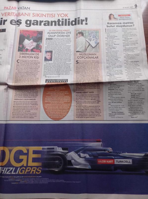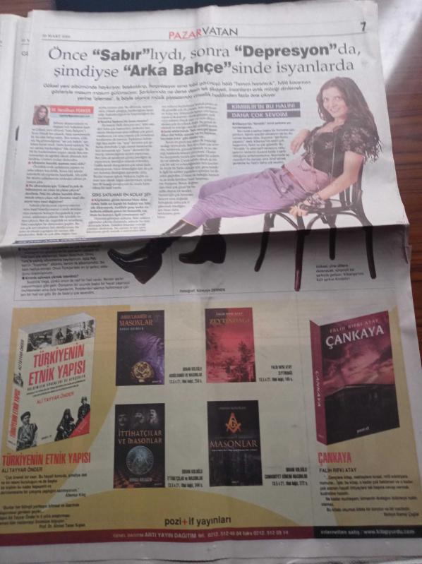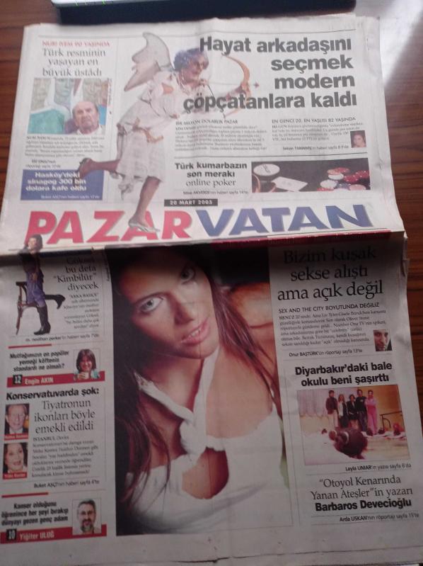 Vatan Pazar Gazetesi - 20 Mart 2005 - Hayat Arkadaşını Seçmek Modern Çöpçatanlara Kaldı - Türk Resminin Yaşayan En Büyük Üstadı Nuri İyem 90 Yaşında - Şarkıcı Göksel Bu Defa Kimbilür Diyecek - Berrak Tüzünataç Bizim Kuşak Sekse Alıştı Ama Açık Değil - Tan Sağtürk - Diyarbakır'da Bale Okulu Beni Şaşırttı - Haldun Dormen - Yıldız Kenter - Hasköy'deki Sinagog 300 Bin Dolara Kafe Oldu adlı eser Türkçe dilindedir.