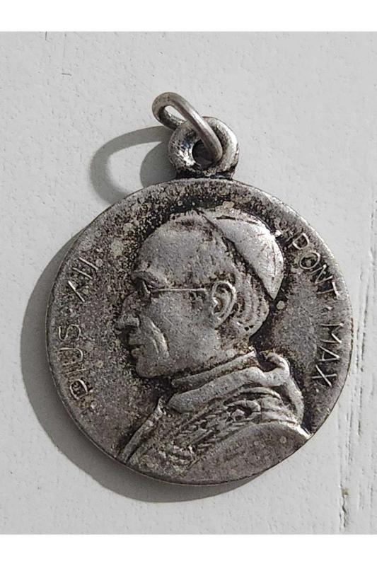 Vatikan Dini Temalı Gümüş Kolye Ucu.; Orijinal dönemine ait 2cm çapında 2.7gram ağırlığında nadir dini kolye ucu.; Antika Hristiyan kolye ucu