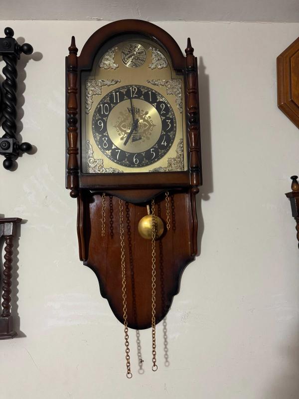 Velis Quartz Ahşap Sarkaçlı Duvar Saati 1970–1980’li yıllarda popüler olan klasik Alman tarzı “Regulator” Velis Quartz ahşap sarkaçlı duvar saati, temiz durumda ve orijinal parçaları (sarkaç, zincir, cam kapak) Çalışır durumda, 13 saat önce kitantik’te satışa sunulmuştur.