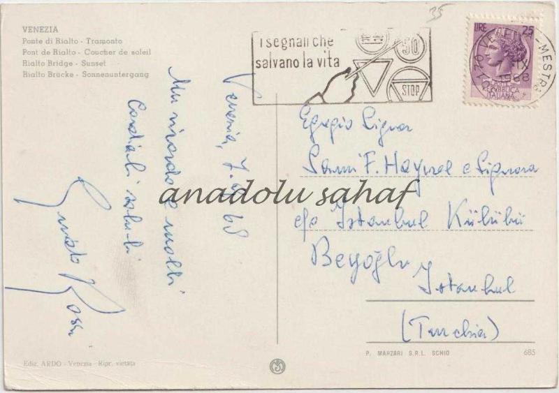 Venezia - Ponte di Rialto, Tramonto, 1968 / Postadan Geçmiş, Pullu, Damgalı, en son 1 yıl önce güncellenmiştir.