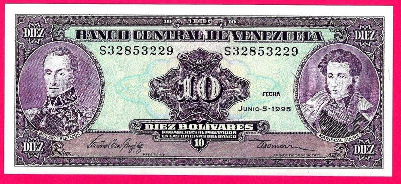 Venezuela, 10 Bolivares, 1995, P-61 (61d), UNC (MZT 15 379) ÇİL, 2 gün önce satışa sunulmuştur.