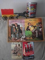 Veresiye satan peşin satan ahşap tablo 20x30 cm civarı. Fatıma cigarette coca cola mini poster kart postal afiş tanıtım kart ları. Tipitip görselli nostaljik teneke metal kumbara. Western vahşi batı teksas at posta mühimmat arabası koleksiyon dekor hediye nostalji tasarım vintage aksesuar promosyon reklam Hediyelik dekorluk retro tasarım başlıklı antika/koleksiyon objesinin menşei belirtilmemiştir. Objenin ait olduğu dönem bilinmeketedir.