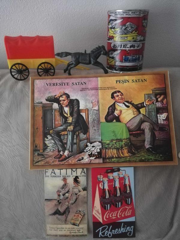 Veresiye satan peşin satan ahşap tablo 20x30 cm civarı. Fatıma cigarette coca cola mini poster kart postal afiş tanıtım kart ları. Tipitip görselli nostaljik teneke metal kumbara. Western vahşi batı teksas at posta mühimmat arabası koleksiyon dekor hediye nostalji tasarım vintage aksesuar promosyon reklam Hediyelik dekorluk retro tasarım, 1 yıl önce kitantik’te satışa sunulmuştur.