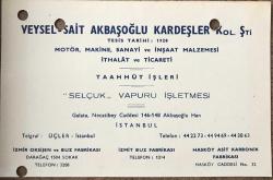 Veysel Sait Akbaşoğlu Kardeşler Kol. Şti. Motör, Makine Sanayi ve İnşaat Malzemesi İthalat ve Ticaret "Selçuk" Vapuru İşletmesi (İstanbul) - Kartvizit