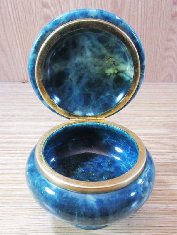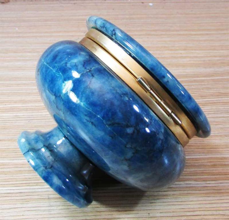 VİNTAGE, İTALYAN MENŞEİLİ,ÇOK GÜZEL VE ZARİF DEKORATİF KUTU, RENKLENDİRİLMİŞ ALABASTER-KAYMAK TAŞINDAN OYULMÜŞ, KALIN VE DOLGUN YAPILI, MEVCUDU İLE SAĞLAM VE TEMİZ, KAPALI HALDE YÜKSEKLİĞİ 9cm,ÇAP GENİŞLİĞİ 7,5cm