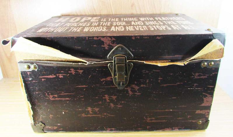 VİNTAGE, ÜZERİNDE KAPLI SUNİ DERİ,KİLİT VE METAL AKSAMLARINA ESKİTME YAPILIP ANTİKA HAVASI VERİLMİŞ, İLGİNÇ AHŞAP SANDIK, MEVCUDU İLE SAĞLAM VE TEMİZ, MENTEŞELERİ,KİLİTİ SORUNSUZ, DIŞ ÖLÇÜLERİ 24cmx24cmx41cm