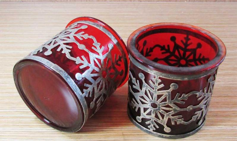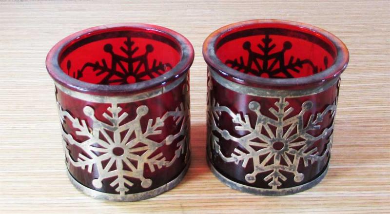 ÜZERLERİ ÇOK GÜZEL GÜMÜŞ KAPLAMA METAL GİYDİRMELİ, KIRMIZI CAM CAM YAPILI ÇİFT MUMLUKLAR, SAĞLAM VE TERTEMİZLER, YÜKSEKLİKLERİ 7cm,AĞIZ GENİŞLİKLERİ 7,5cm