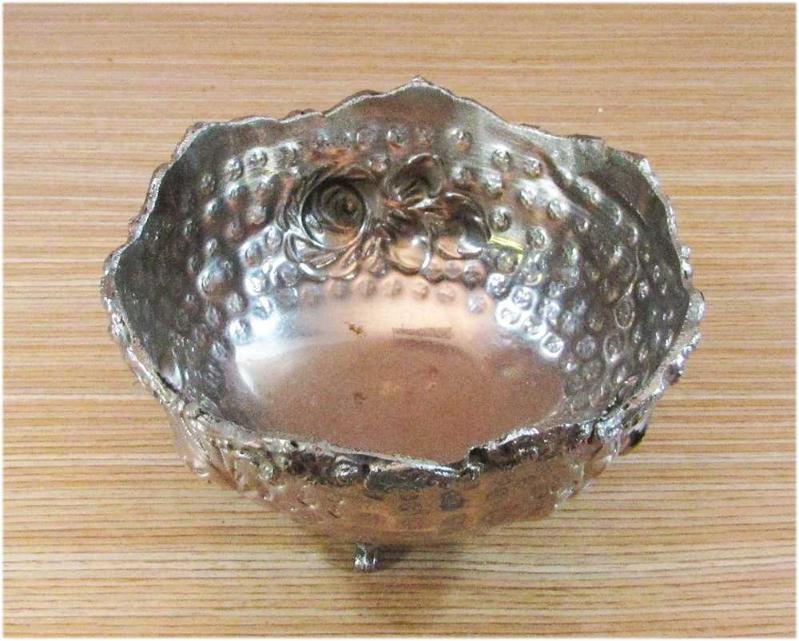 VİNTAGE PİRİNÇ ÜZERİ GÜMÜŞ KAPLAMA,KABARTMA MOTİFLİ ÇOK GÜZEL BİR ŞEKERLİK SAĞLAM VE TEMİZ,ŞIK VE ZARİF, YÜKSEKLİĞİ 8cm,AĞIZ ÇAP GENİŞLİĞİ 13,5cm