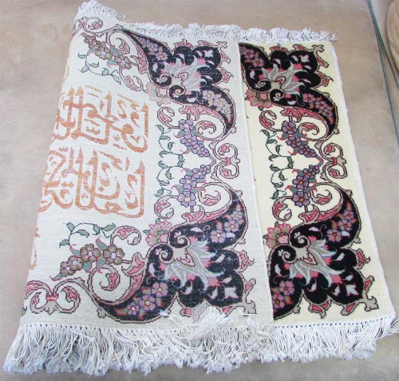 VİNTAGE, İRAN DOKUMA ÇOK GÜZEL VE TERTEMİZ, AYET YAZILI DUVAR HALISI, ATKILAR YÜN,ÇÖZGÜLER PAMUKLU SANIRIM, DETAYLAR ÜRÜN RESİMLERİNDE, SAÇAKLARI HARİÇ ÖLÇÜLERİ 58cmx92cm